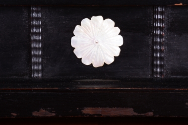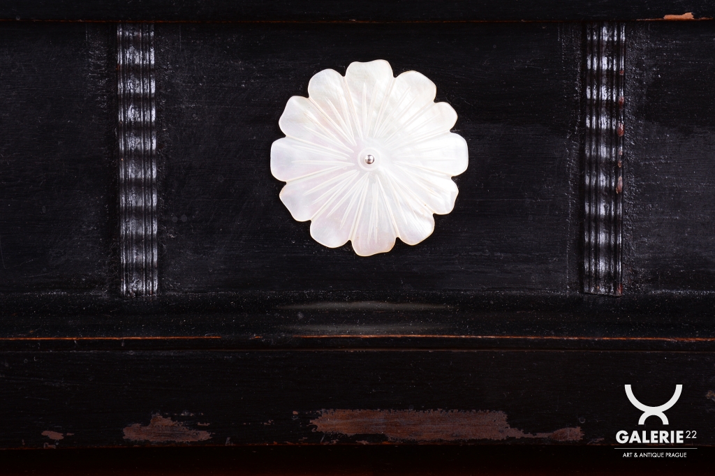 Ozdoby - polychrom - zlaceno plátkovým zlatem, perleť a mosaz.