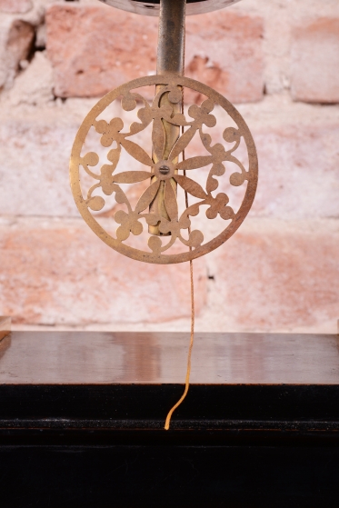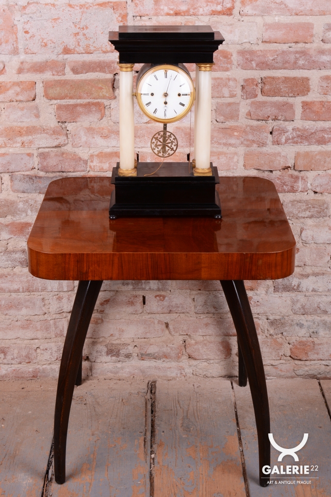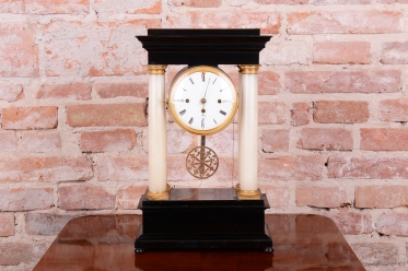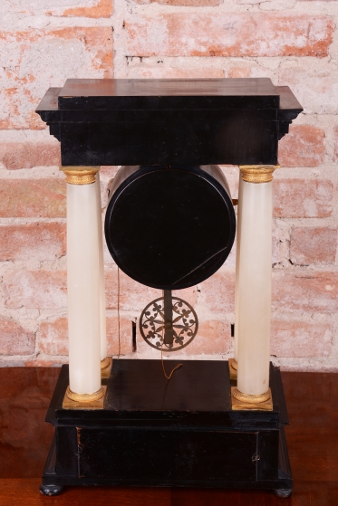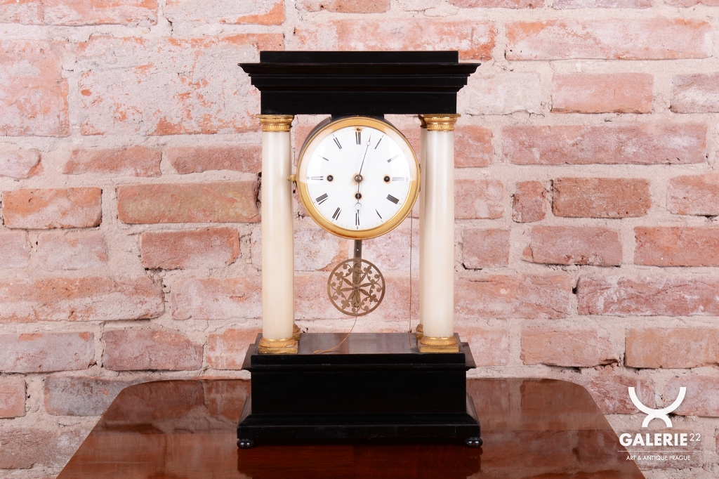 Korintské hlavice, rámeček ciferníku a kyvadlo - cizelovaná mosaz.