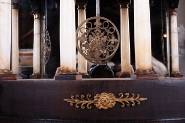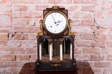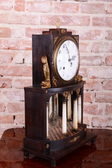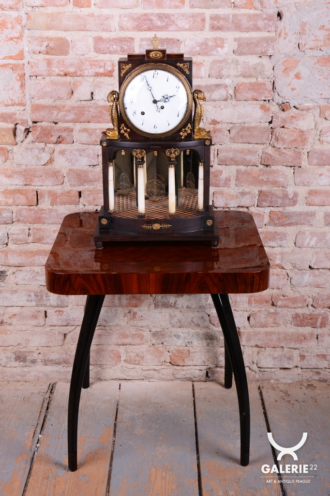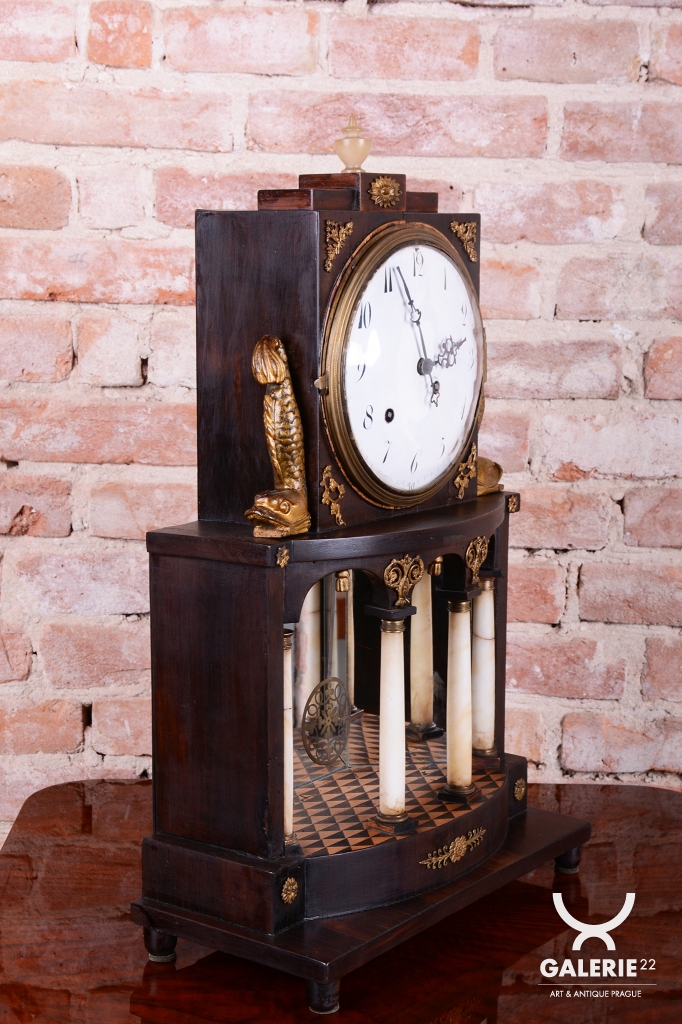 Architektonická symbolika: V empíru byly tyto hodiny koncipovány jako miniaturní antické chrámy (portály).