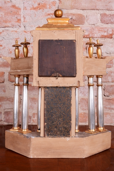 Polychromovaná skříňka stříbřeno a zlaceno plátkovým zlatem.