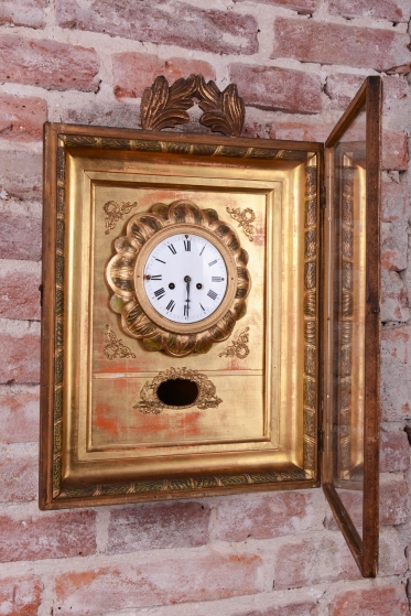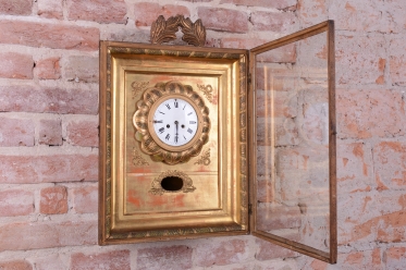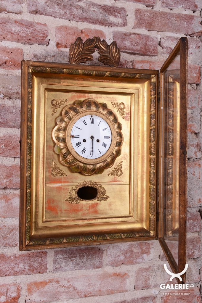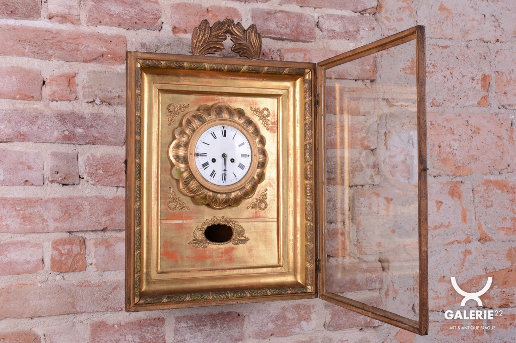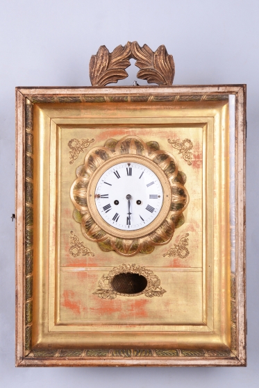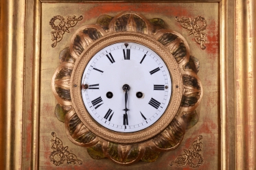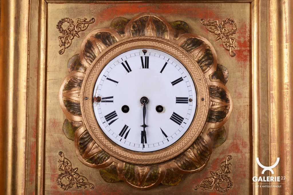 Věnec: Ciferník je vsazen do velkého, kruhového, bohatě reliéfního věnce ve tvaru slunce,(slunce jako symbol monarchie/síly).