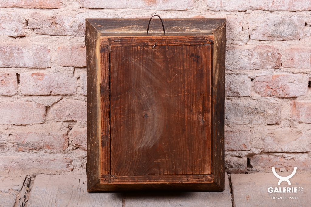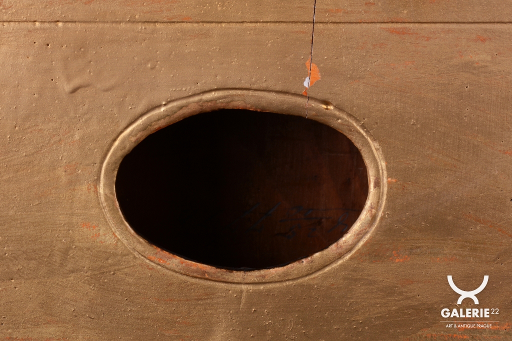Polychromovaná skříňka, zlacená plátkovým zlatem.