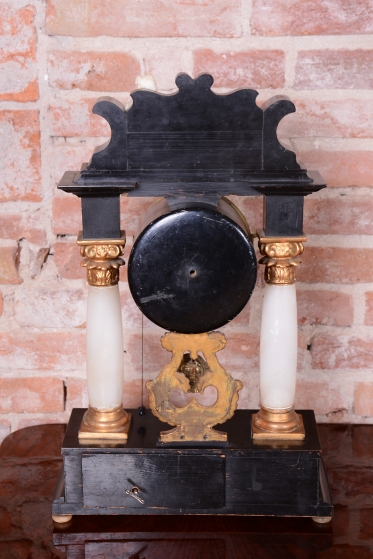 Sloupky, nožky a hlavní ozdoba z alabastru.