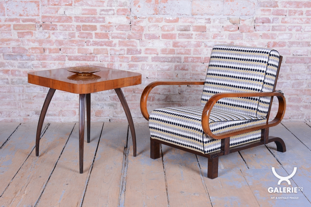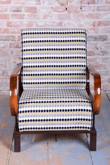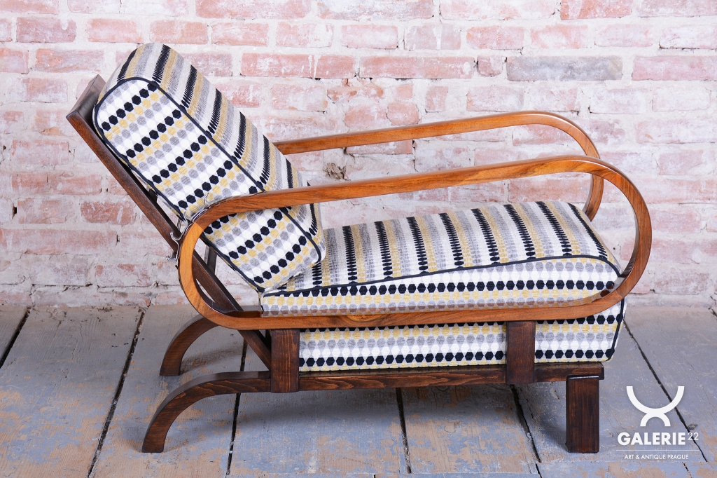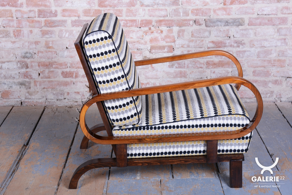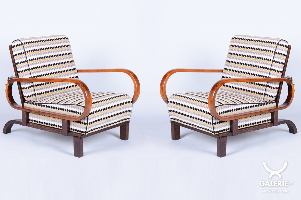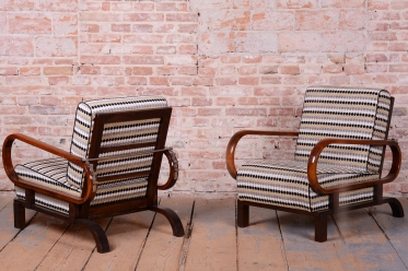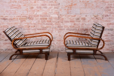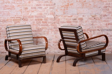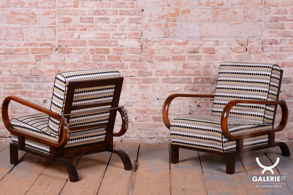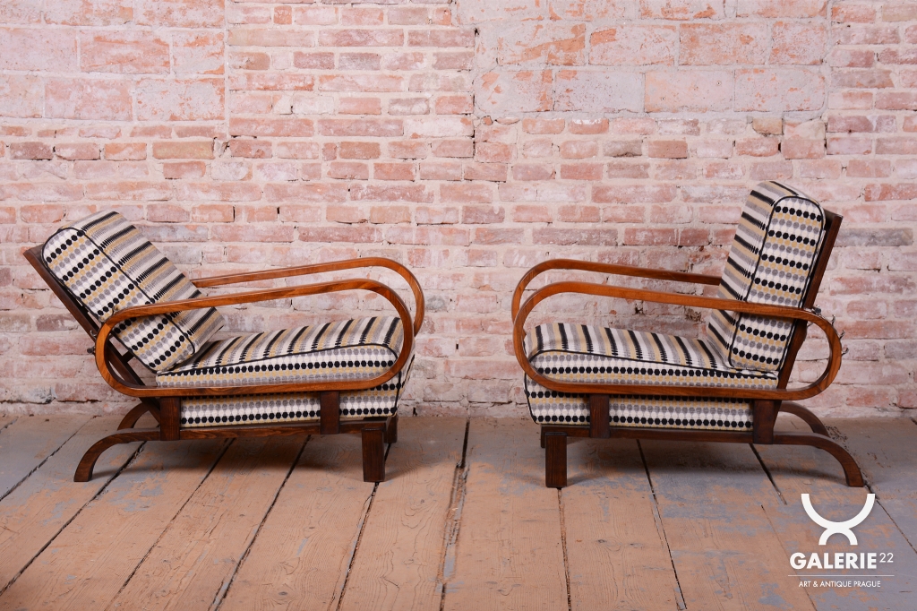 Tento luxusní pár polohovacích křesel ve stylu Art Deco je ikonou z počátku 20. století, navrženou legendárním designérem Jindřichem Halabalou pro UP Závody v Československu.