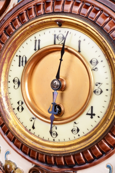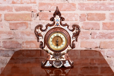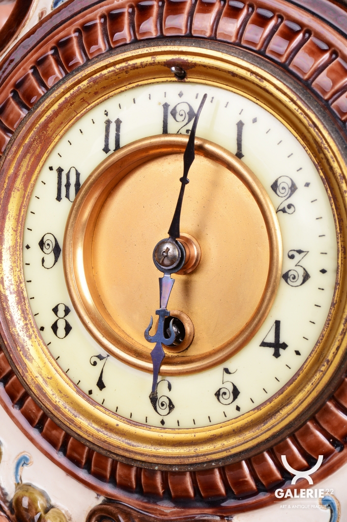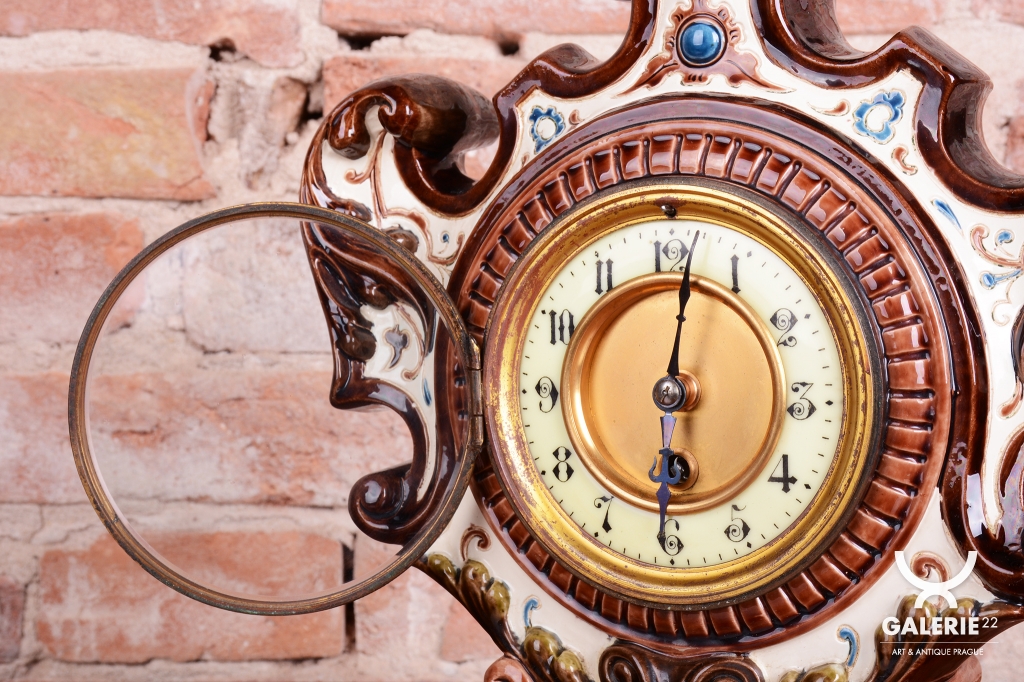 Majolika / Fajáns: Hodiny jsou vyrobeny z glazované keramiky s bohatým leskem.