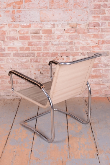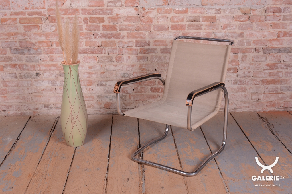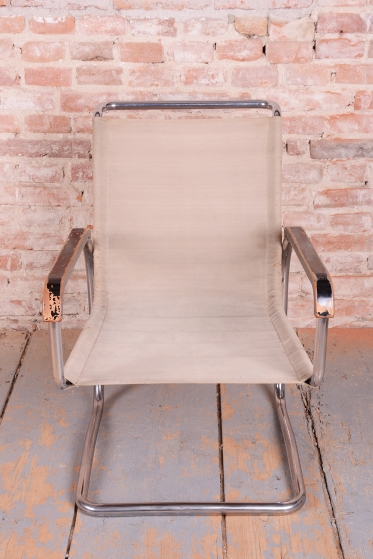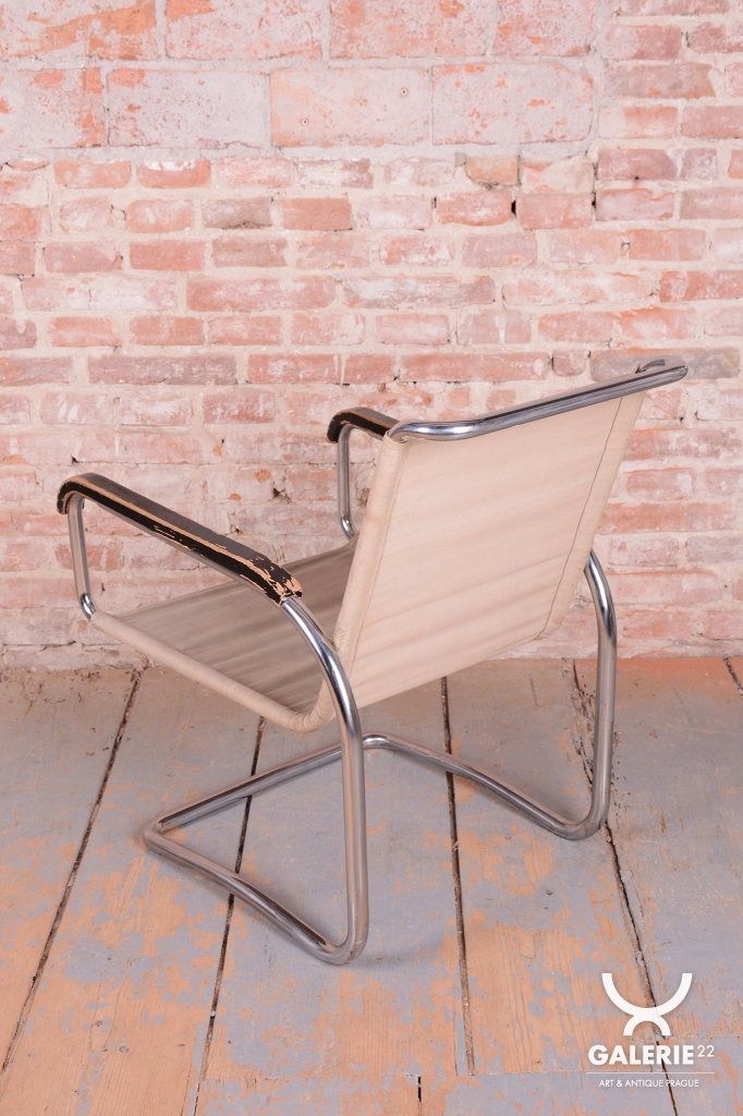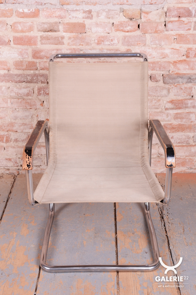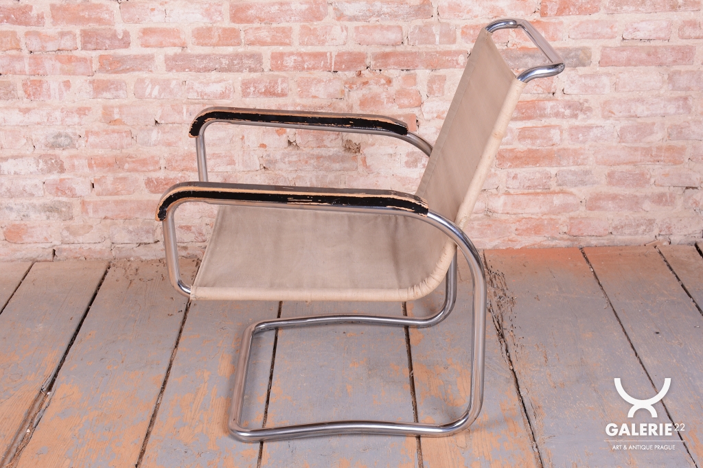 Křeslo prošlo pečlivou renovací, během níž byl chrom profesionálně vyčištěn a politura na bukových područkách oživená. Původní plátno je ve velmi dobrém stavu. Toto Bauhaus křeslo je ideální pro ty, kteří hledají nábytek s historií a stylem. Je to krásný a funkční kus nábytku, který bude ozdobou každého interiéru.