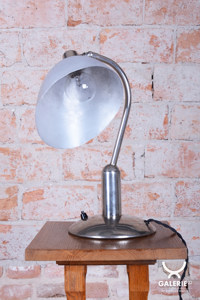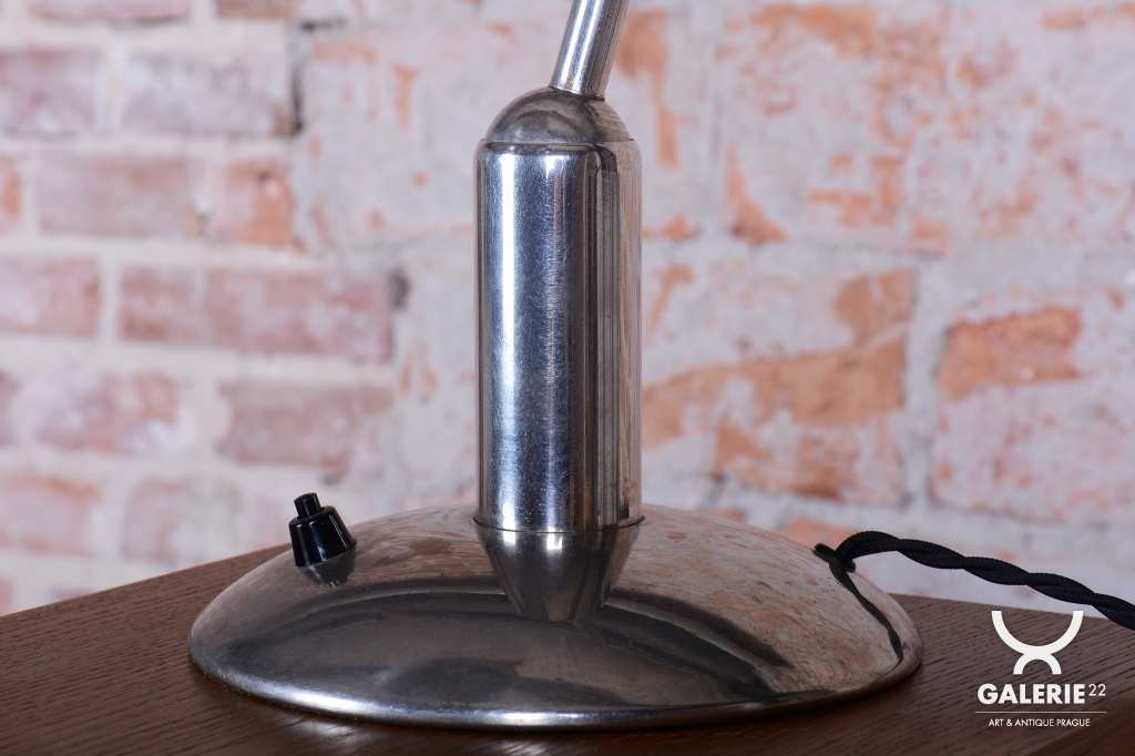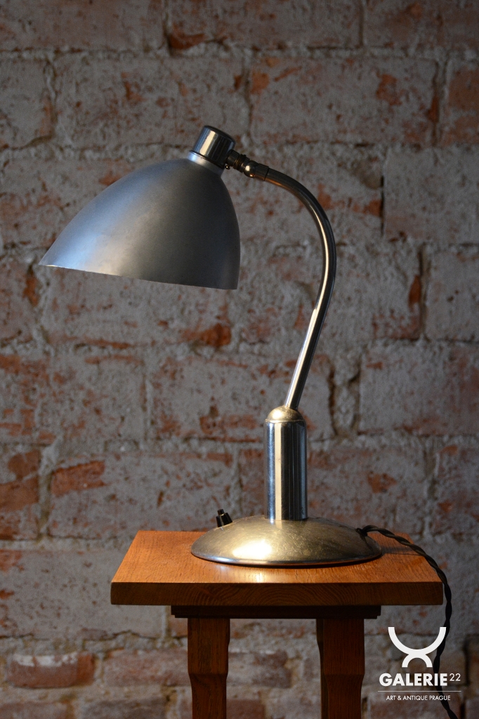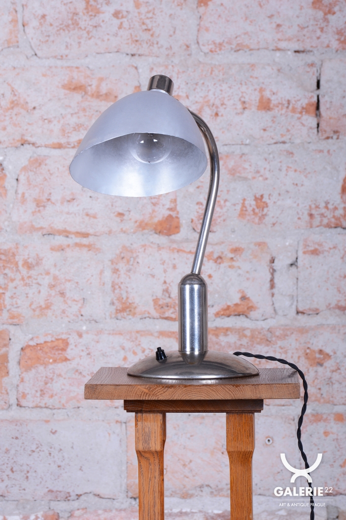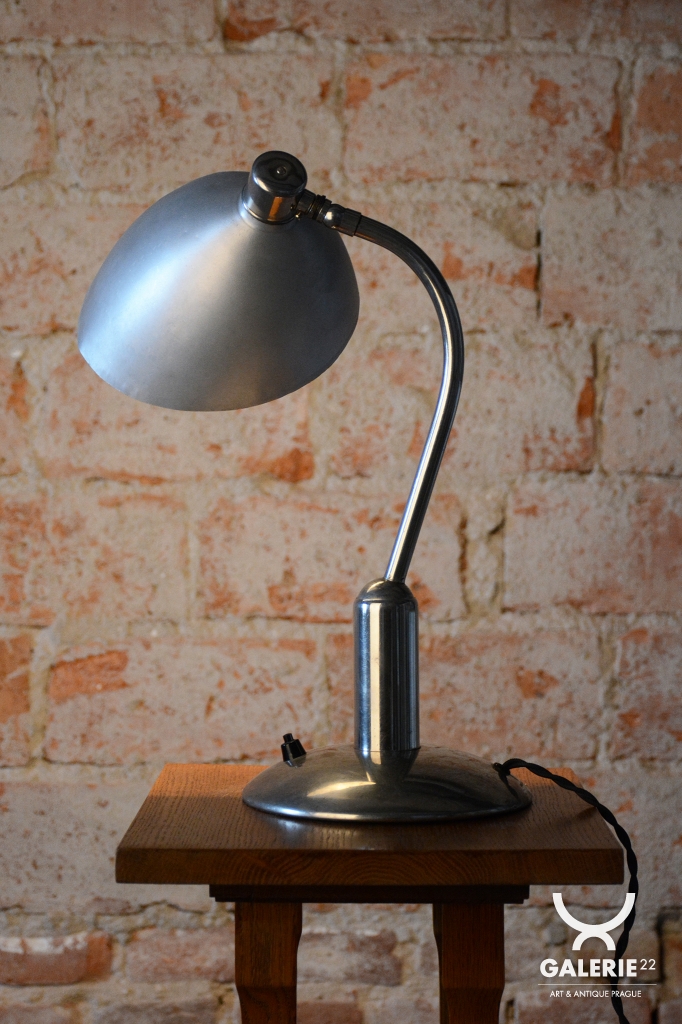 Tato ikonická pracovní stolní lampa typu LH 100 je mistrovským dílem československého designu éry Bauhaus. Pochází ze 30. let 20. století a je výsledkem spolupráce otce a syna – Franty a Jaroslava Anýžových. Zatímco Franta Anýž proslul jako geniální umělecký slévač a cizelér, Jaroslav vnesl do rodinné slévárny v pražských Holešovicích moderní vize. Tento model vyniká unikátním konstrukčním řešením, kdy je kulový kloub umístěn na vyvýšený sloupek. Díky tomu si lampa zachovává elegantní siluetu v jakékoli poloze a nepůsobí nikdy nepatřičně.