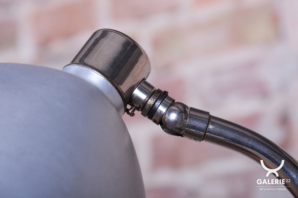 Lampa je vybavena hliníkovým stínidlem, kterému se pro jeho specifický tvar přezdívá „Kobra“. Celková konstrukce je velmi těžká, což zaručuje mimořádnou stabilitu při polohování. Kus prošel precizním restaurováním, v rámci kterého byla chromovaná ocel profesionálně vyčištěna. Pro zajištění bezpečného provozu byla instalována nová elektrifikace. Jde o vysoce funkční a esteticky osobitý sběratelský předmět, který reprezentuje vrcholnou éru české kovovýroby.