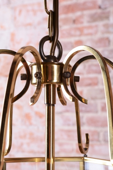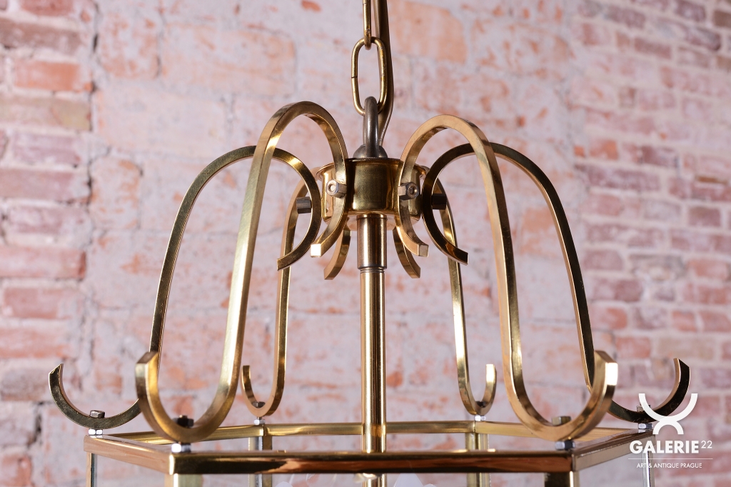 Tento elegantní lustr představuje vytříbené spojení moderního stylu Art Deco a tradičního gustaviánského stylu, který je pro švédský design typický. Svítidlo pochází ze Švédska z poloviny 20. století a ztělesňuje severskou interpretaci klasické elegance. Konstrukce je vyrobena z mosazi, která byla v rámci restaurování profesionálně vyčištěna, aby vynikl její hřejivý zlatavý lesk a jemné dekorativní detaily, které odkazují na historizující prvky gustaviánské éry.
