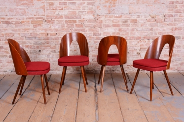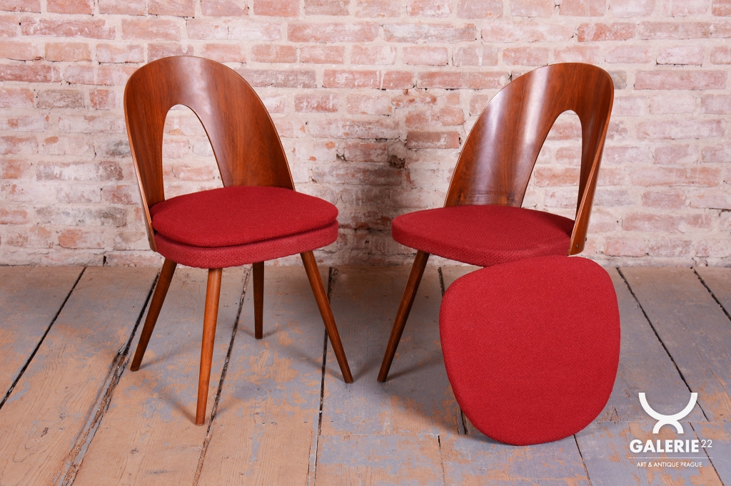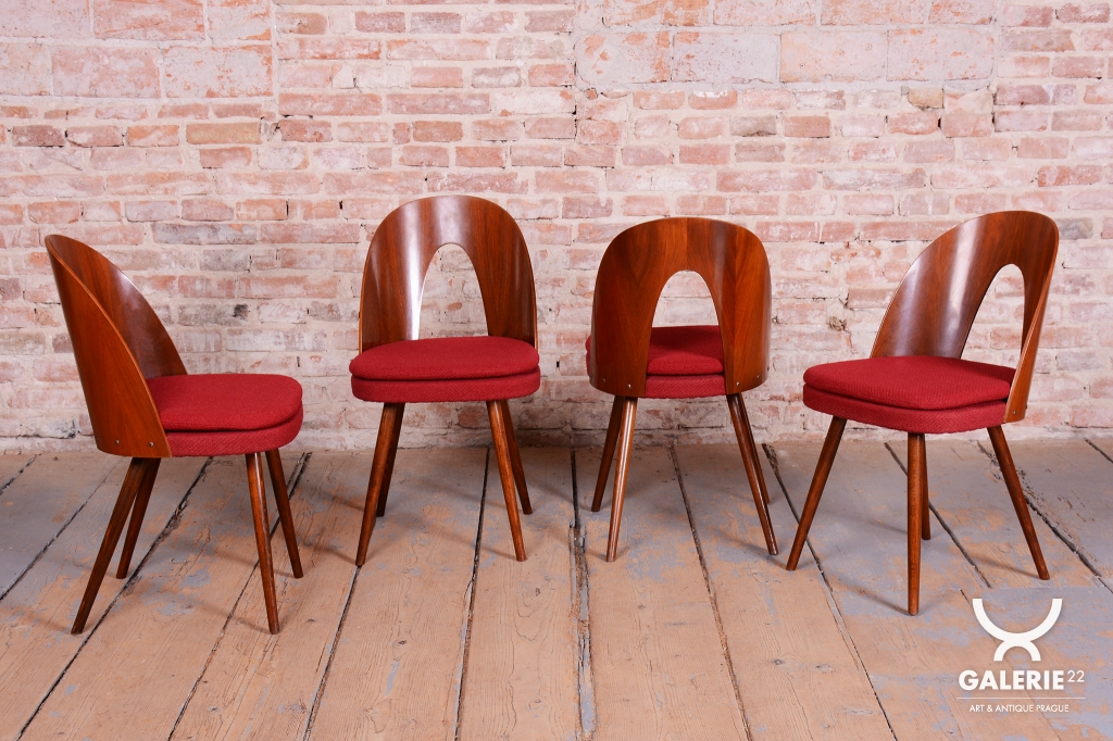 Tento set čtyř židlí z období Mid-Century Modern pochází z poloviny 20. století a je dílem renomovaného architekta Antonína Šumana. Konstrukce z kvalitního ořechového dřeva vyniká elegantními liniemi a precizním řemeslným zpracováním. Židle kombinují nadčasový design s vysokou funkčností, což z nich činí ideální doplněk do interiérů s retro i moderním nádechem.