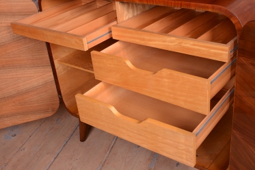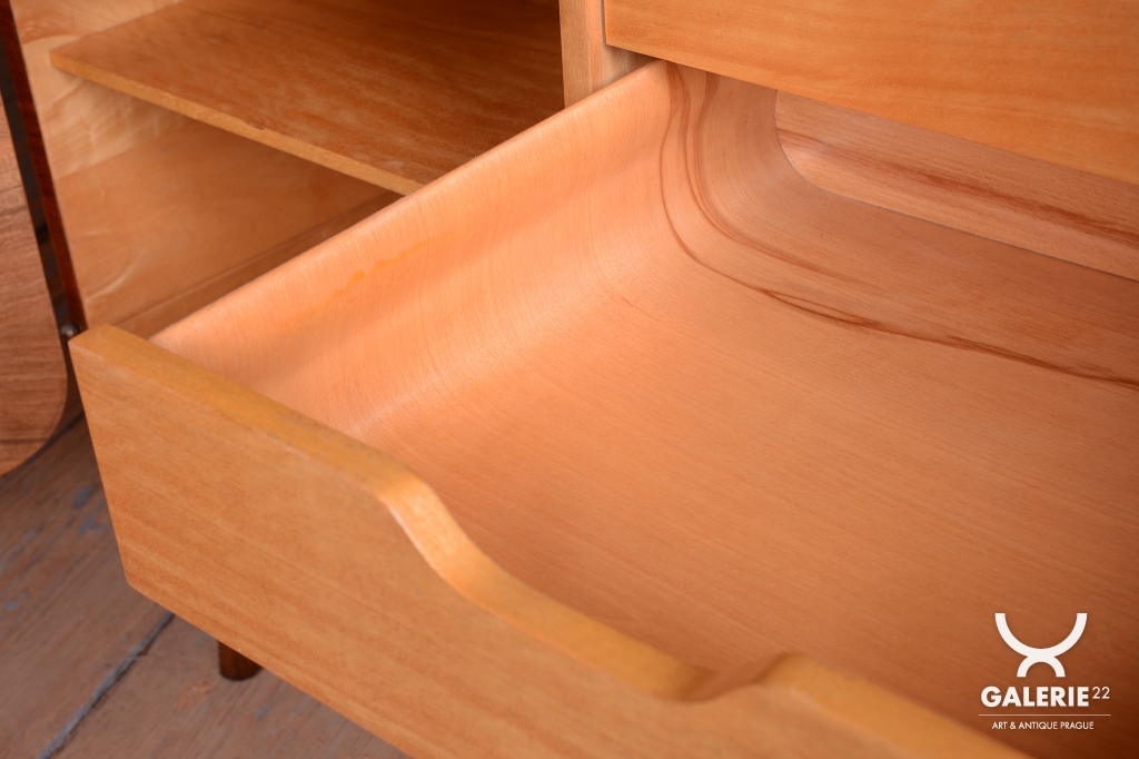 Tento sekretář je výjimečným příkladem poválečného československého designu, který v sobě nese eleganci doznívajícího Art Deca i nastupující moderní linky 40. let. Navrhl jej jeden z nejvýznamnějších českých designérů Jindřich Halabala a vyroben byl v období let 1946–1948. Sekretář je dokonalou ukázkou toho, jak Halabala dokázal propojit reprezentativní vzhled s vysokou funkčností, což z něj činí nadčasový kus nábytku vhodný do stylových i moderních interiérů.