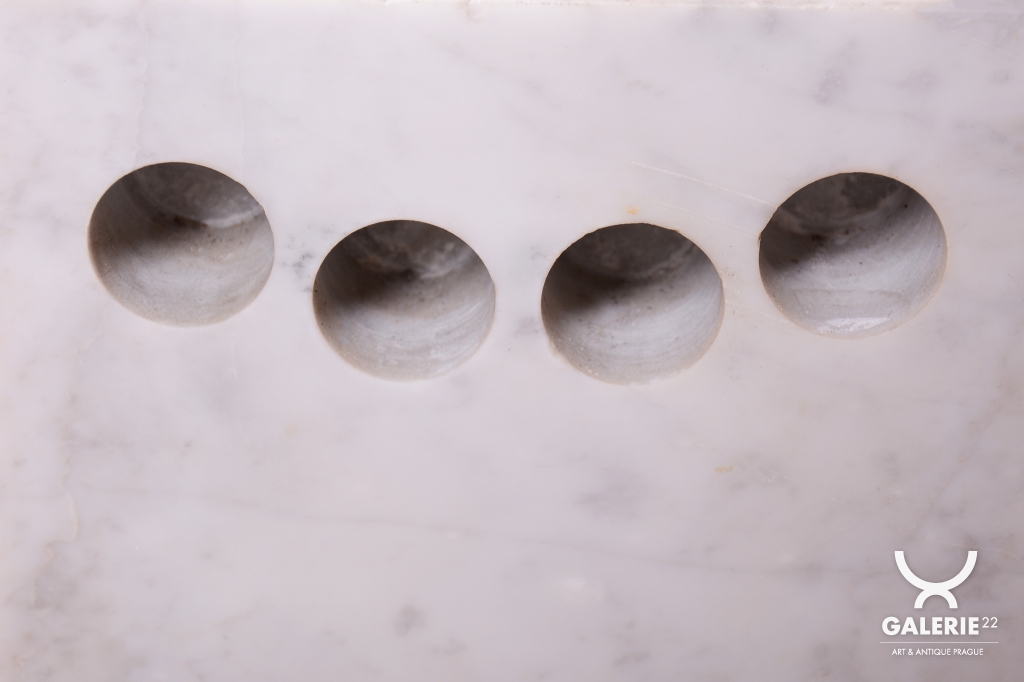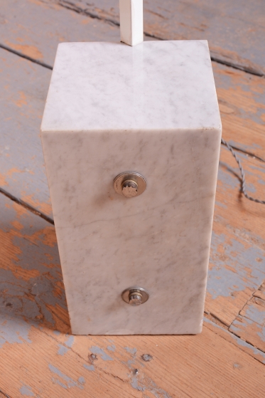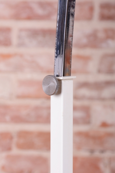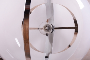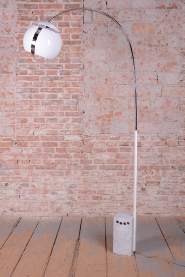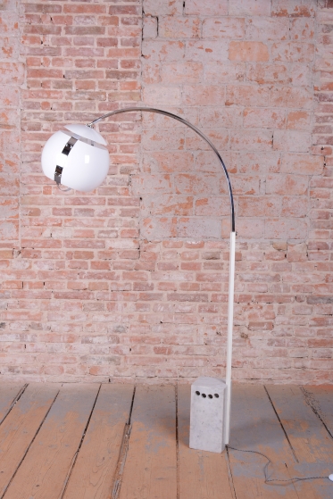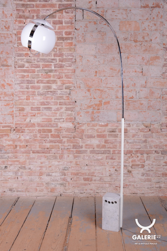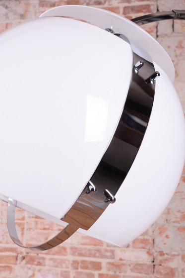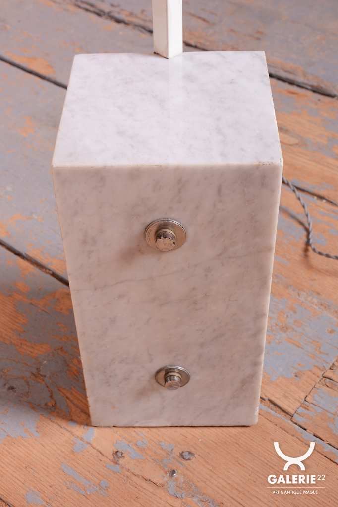 Svítidlo prošlo precizním restaurováním. Konstrukce z chromované oceli byla profesionálně vyčištěna a disponuje funkčním výsuvným ramenem, které umožňuje plynulé nastavení výšky svítidla podle potřeb interiéru. Výjimečnou stabilitu celého kusu zajišťuje velmi těžká mramorová základna, která tvoří luxusní protipól k lehkému polykarbonátovému stínidlu. Lampa má novou elektrifikaci, je plně funkční a připravena stát se designovou dominantou vašeho prostoru.