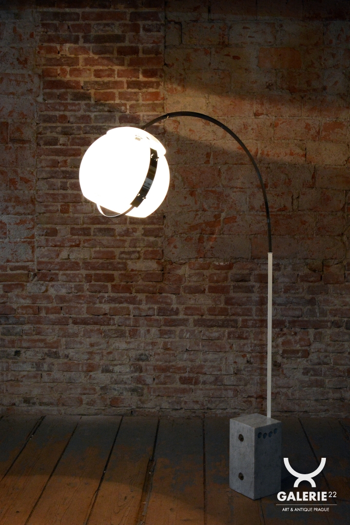 Tato podlahová lampa je ikonickým zástupcem italského designu éry Mid-Century z 60. let 20. století. Byla vyrobena renomovaným výrobcem Harvey Guzzini, který proslul svými experimenty s plasty a kovy, čímž zásadně definoval futuristickou estetiku této doby. Lampa představuje dokonalou rovnováhu mezi elegancí a technickou inovací.