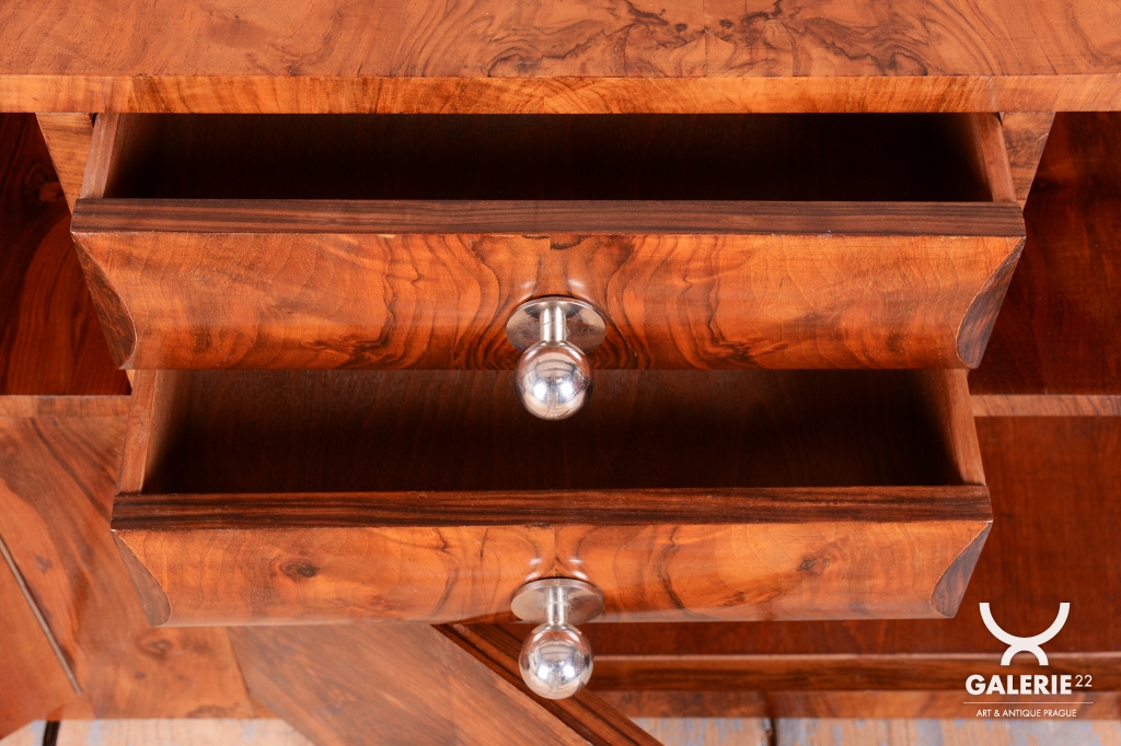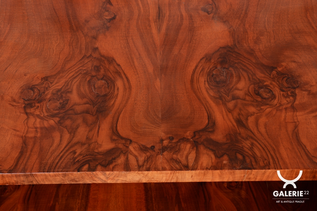 Tento bufet je mistrovskou ukázkou československého nábytkového designu z období 20. let 20. století. V této éře Art Deca se kladl důraz na reprezentativnost a použití exotických materiálů, které demonstrovaly vysoký společenský status a cit pro moderní estetiku. Svým monumentálním, a přesto elegantním tvarem se tento kus stane dominantním prvkem každé jídelny či salonu.