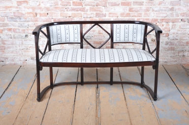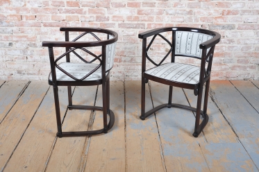 Tato sedací souprava, sestávající z pohovky a dvou křesel, představuje absolutní vrchol evropského designu počátku 20. století. Jedná se o mistrovské dílo vídeňské secese, které navrhl vizionářský architekt a spoluzakladatel Wiener Werkstätte, Josef Hoffmann, pro prestižní firmu J. & J. Kohn. Hoffmannův nezaměnitelný styl, založený na geometrické přísnosti a hře s čtvercovými motivy, zde předznamenává nástup moderní architektury a art deca.