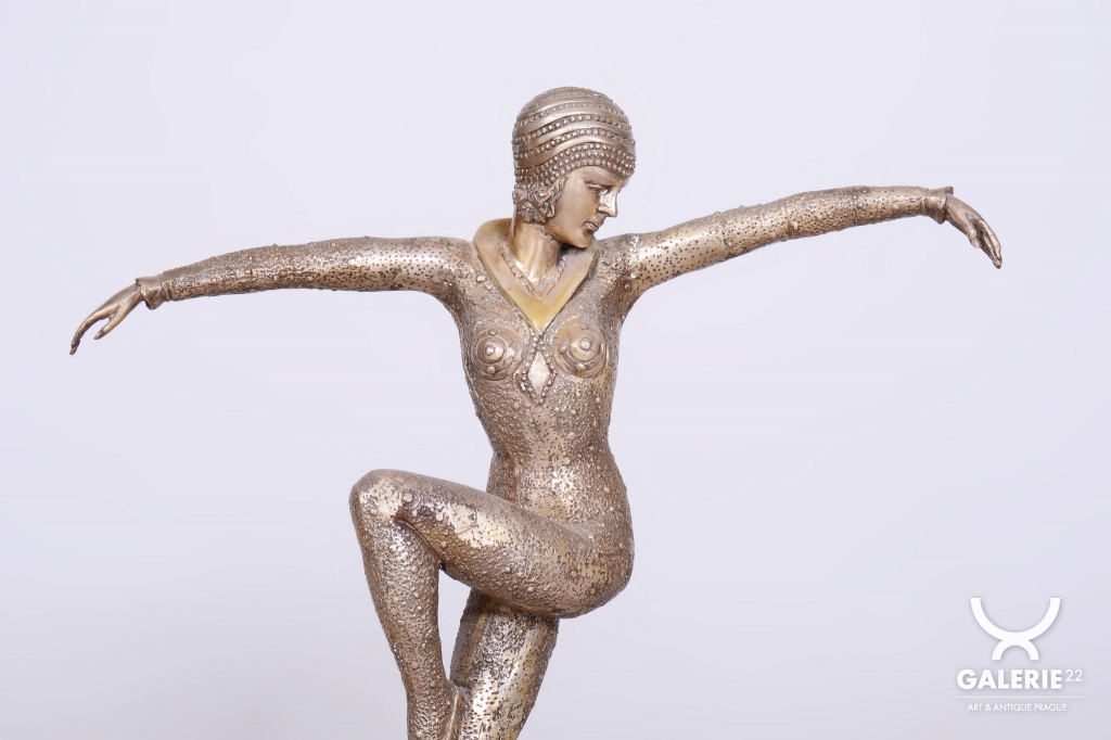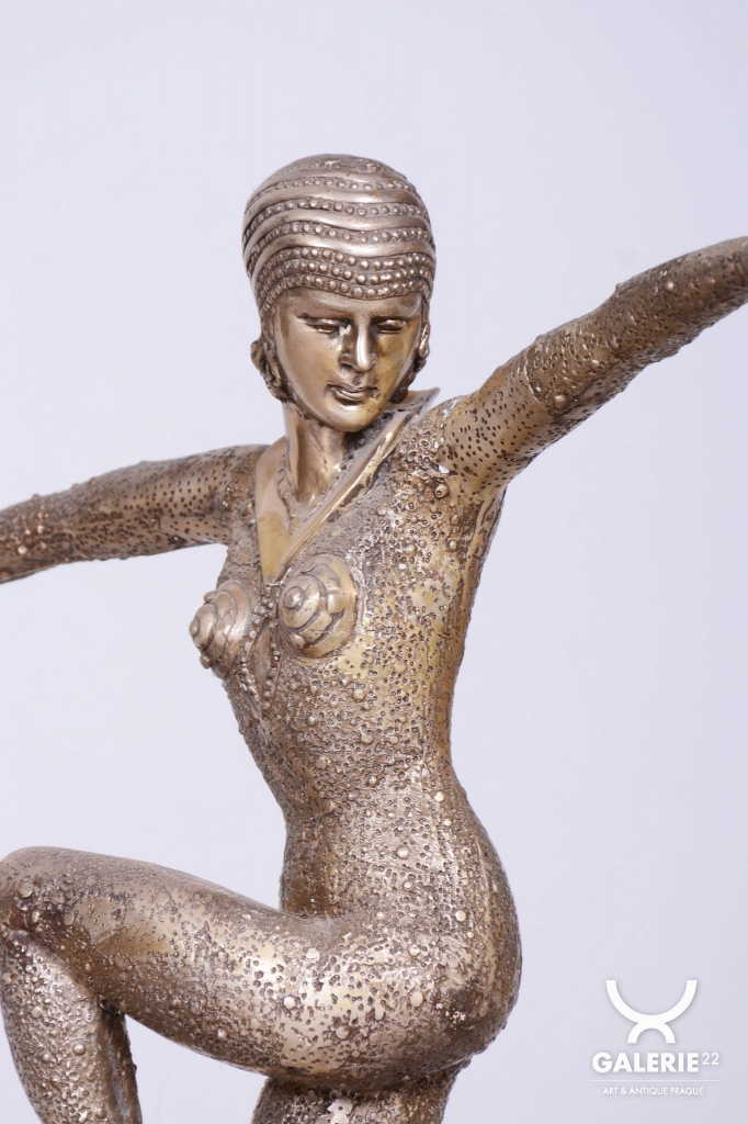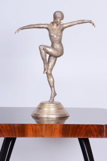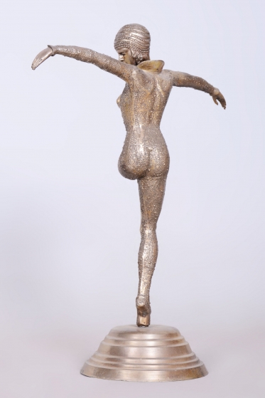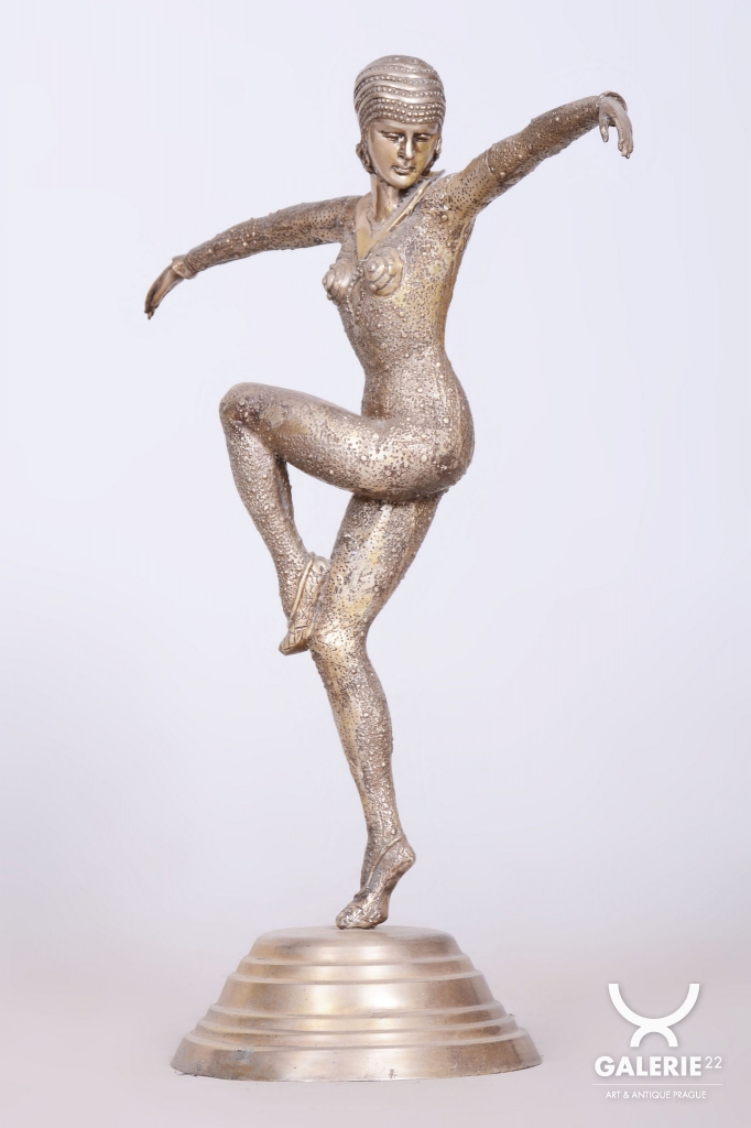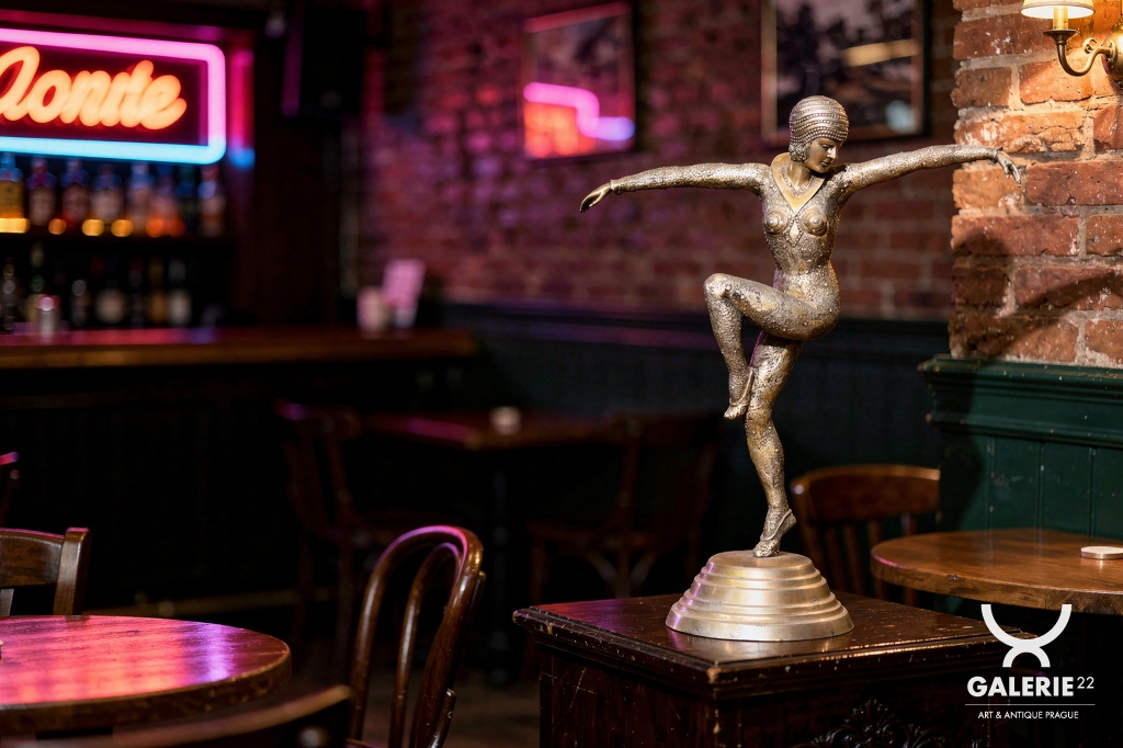 Tato socha tanečnice je ztělesněním elegance a pohybu, které definovaly francouzské Art Deco 30. let 20. století. Jejím autorem je fenomenální Dumitru Haralamb Chipăruș, rumunský sochař tvořící v Paříži, který je dodnes považován za jednoho z nejvýznamnějších představitelů dekorativního sochařství této éry. Jeho díla jsou vysoce ceněna sběrateli po celém světě pro svou schopnost zachytit dramatickou pózu a rafinovanou estetiku tehdejší vysoké společnosti.