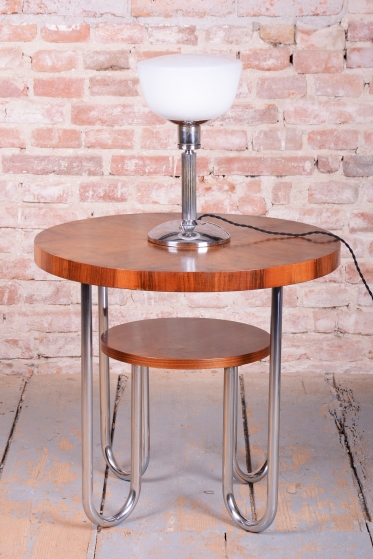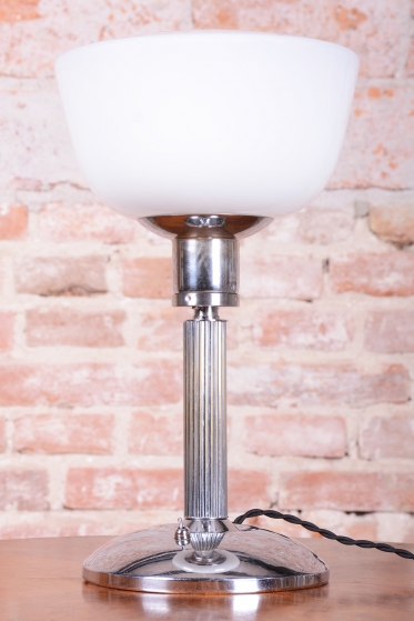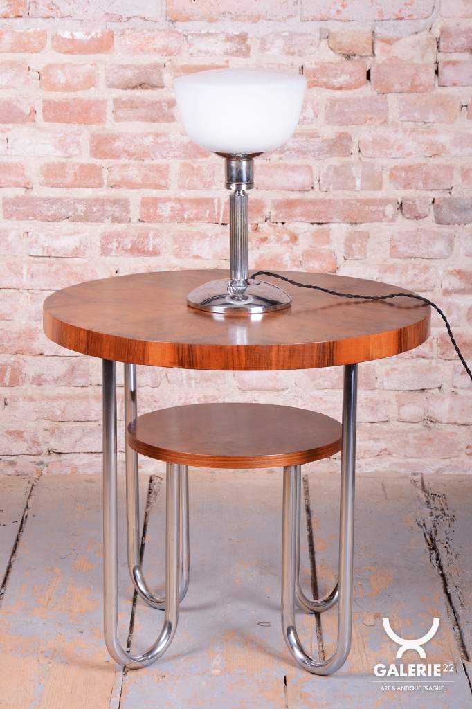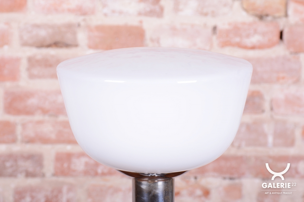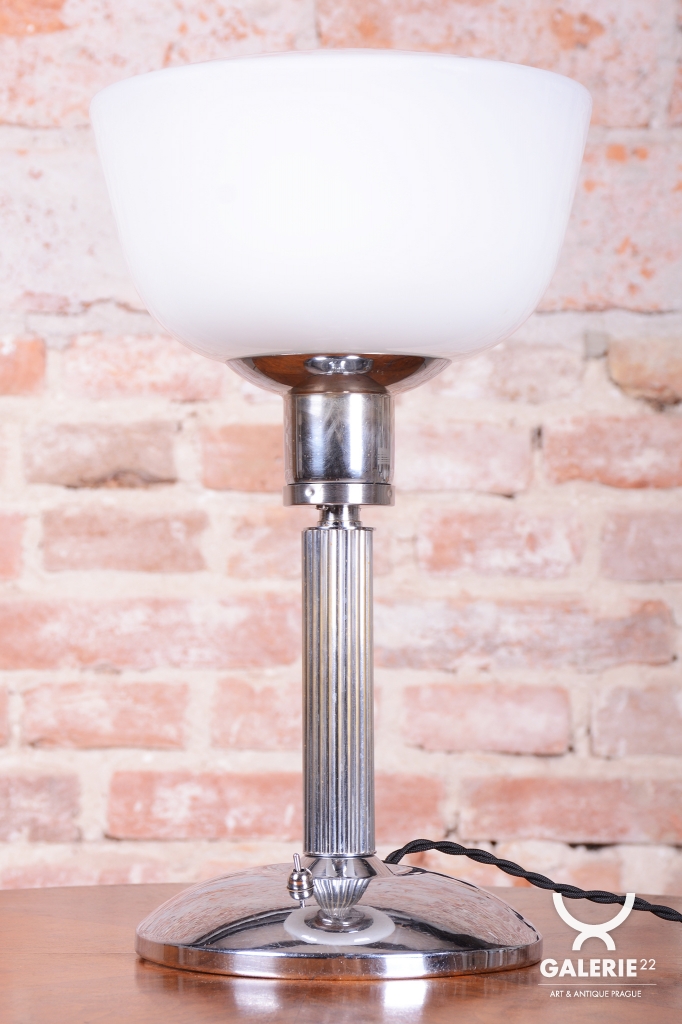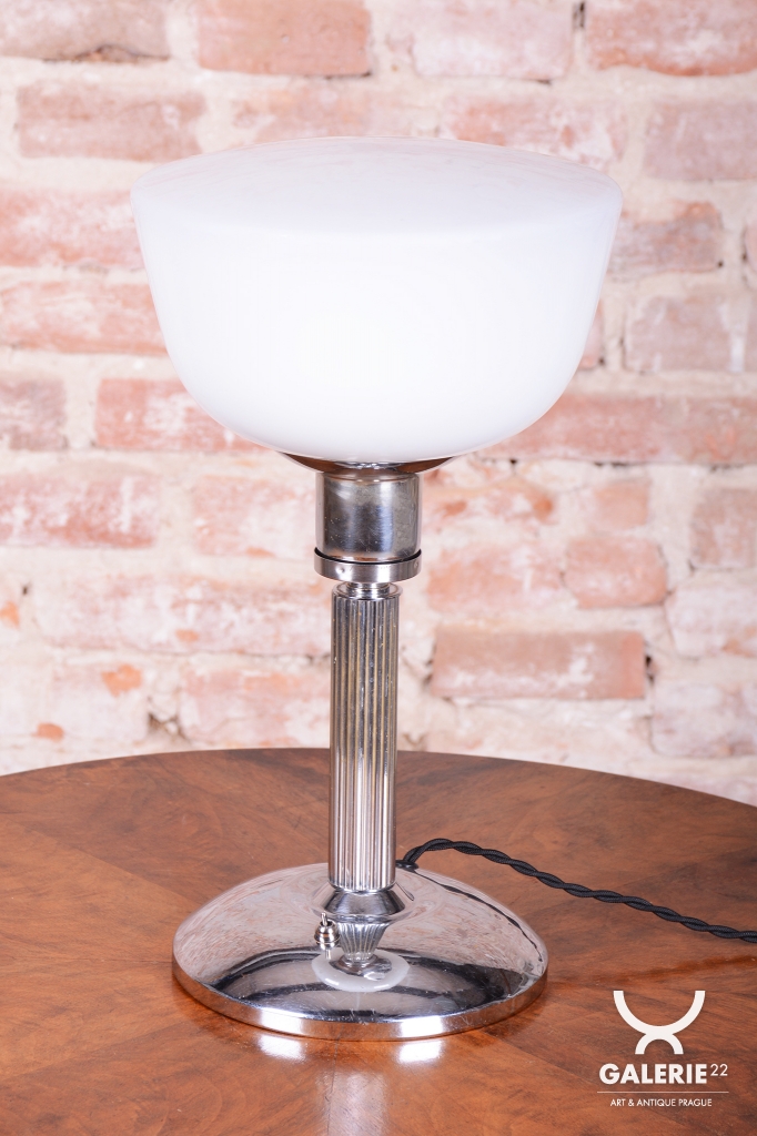 Tato elegantní stolní lampa je klasickým představitelem stylu Bauhaus a byla vyrobena v Československu. Pochází z první poloviny 20. století.