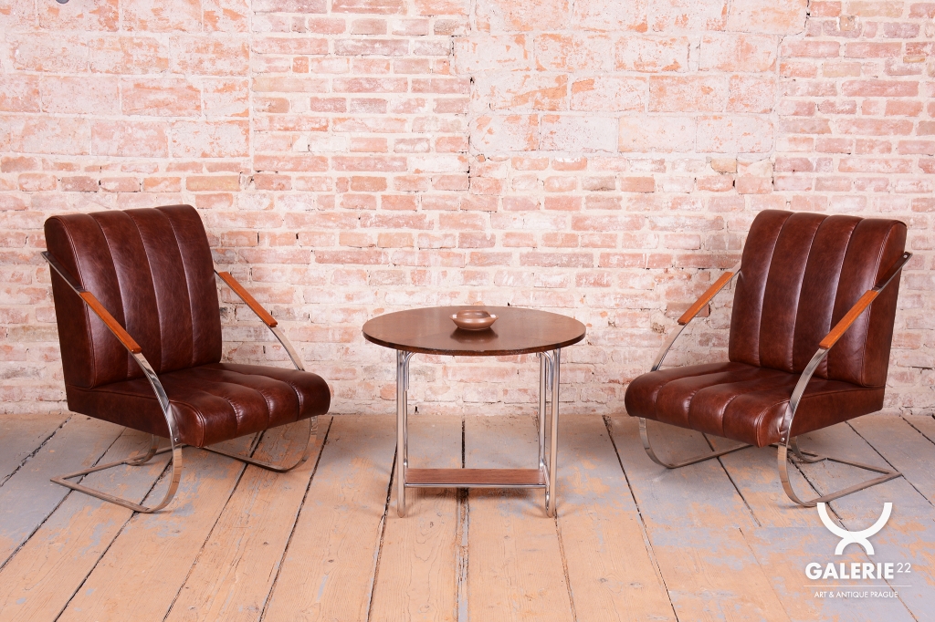 Tato křesla se vyznačují netypickým provedením z plochého pružného železa, které nápadně připomíná tvorbu slavného architekta Ludwiga Miese van der Rohe. Jejich nevídané provedení pochází z Brna, kde Mies van der Rohe pracoval na projektu ikonické vily Tugendhat, což přidává křeslům historický kontext a výjimečnost.