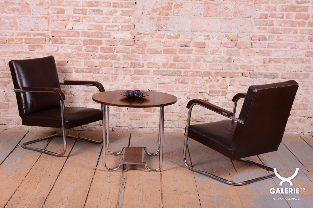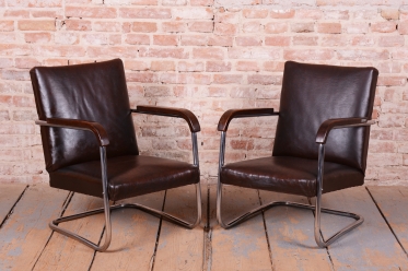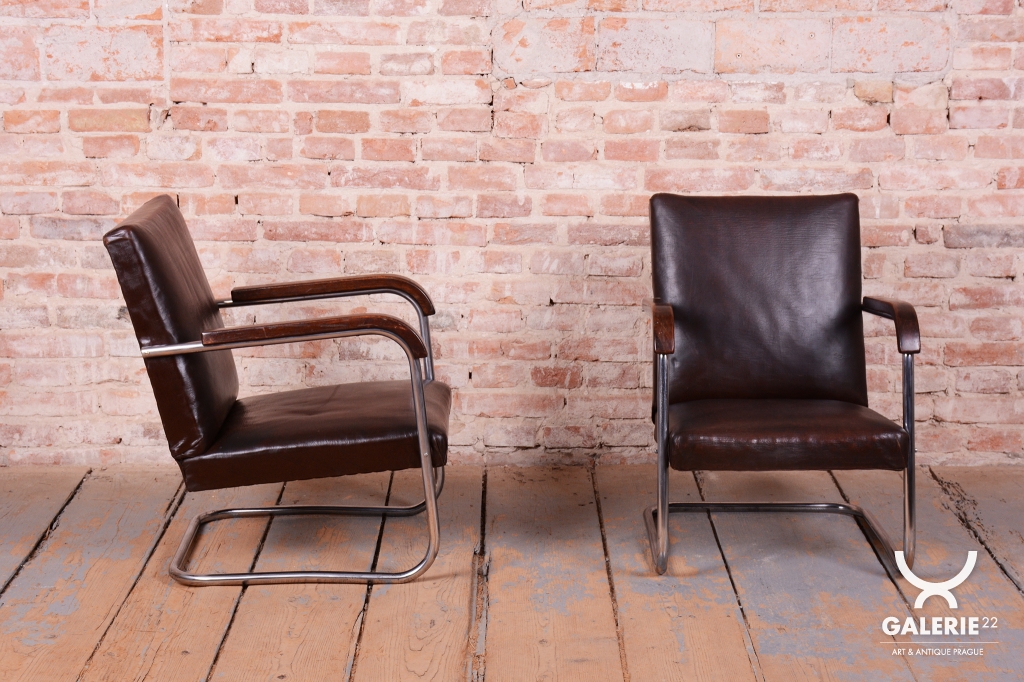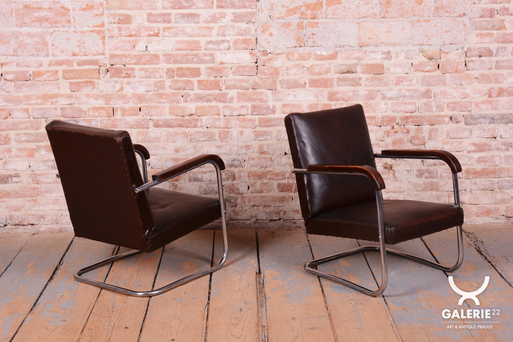 Tento výjimečný pár křesel je mistrovským dílem moderního designu 20. století, pod kterým je podepsán proslulý designér Anton Lorenz. Křesla byla vyrobena v prestižní továrně Mücke Melder v Československu ve 30. letech 20. století. Tento výrobce patřil k evropské špičce ve zpracování ohýbaného nábytku a tato křesla jsou dokonalou ukázkou estetiky Bauhausu. Konstrukce z trubkové chromované oceli byla profesionálně vyčištěna, aby vynikl její oslnivý lesk a čisté, plynulé linie.
