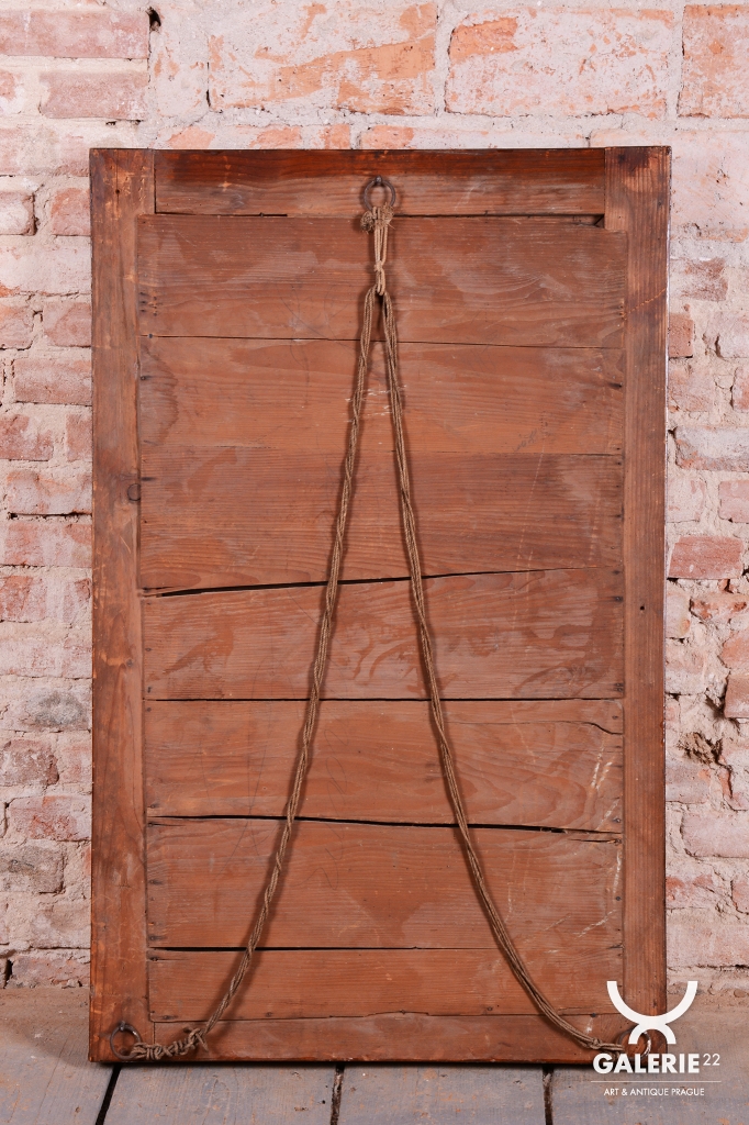Toto vznešené závěsné zrcadlo je vynikajícím příkladem čistoty a elegance empírového slohu. Pochází z Rakouska ze začátku 19. století a ztělesňuje aristokratický vkus napoleonské éry. Základem zrcadla je masivní smrkový rám, který je precizně dýhován ořechem. Výrazná kresba ořechového dřeva dodává předmětu hloubku a ušlechtilost.