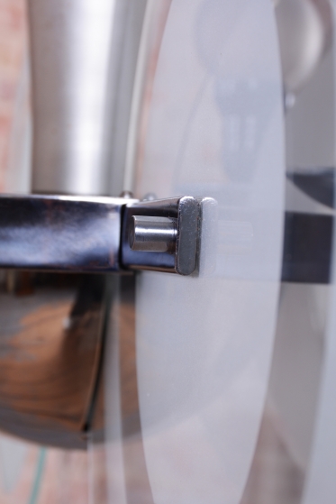 Svítidlo je osazeno stínidly z pískovaného skla, která jemně rozptylují světlo a podtrhují puristický charakter celého návrhu. Lustr prošel náročným procesem restaurování, včetně instalace nové elektrifikace odpovídající současným bezpečnostním normám. Díky tomu je plně funkční a připraven k okamžitému užívání. Jde o vysoce ceněný sběratelský kus od autora, jehož jméno je synonymem pro špičkovou kvalitu a nadčasový design meziválečného Československa.