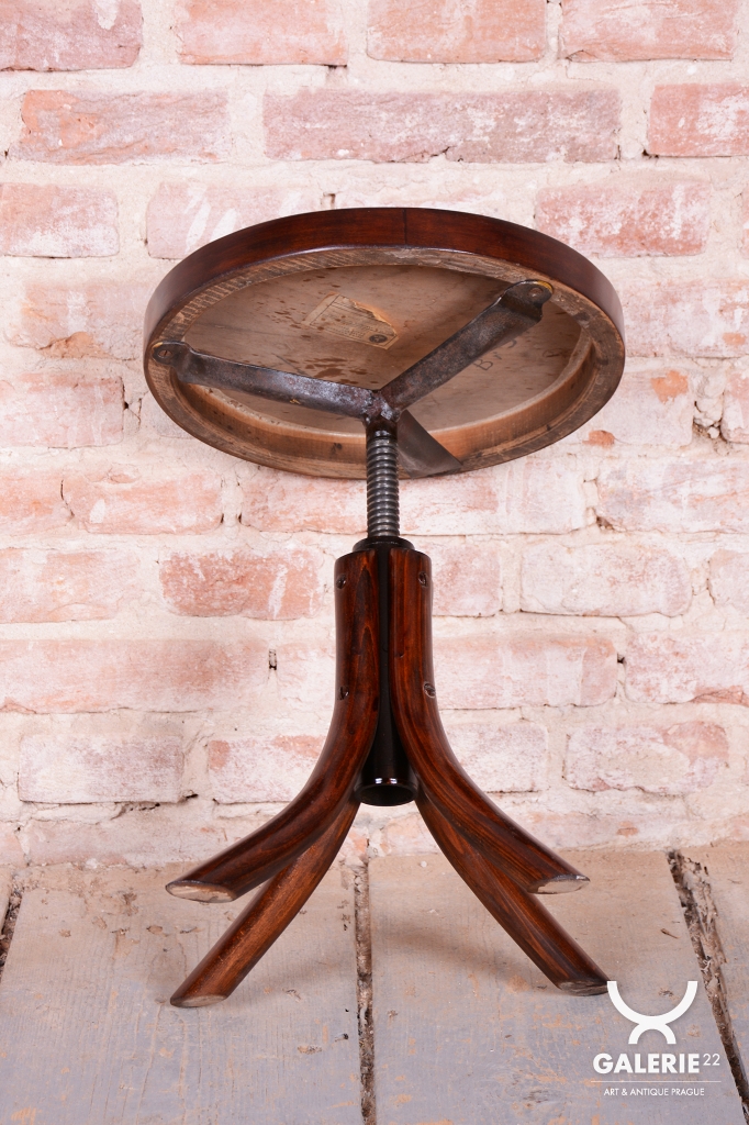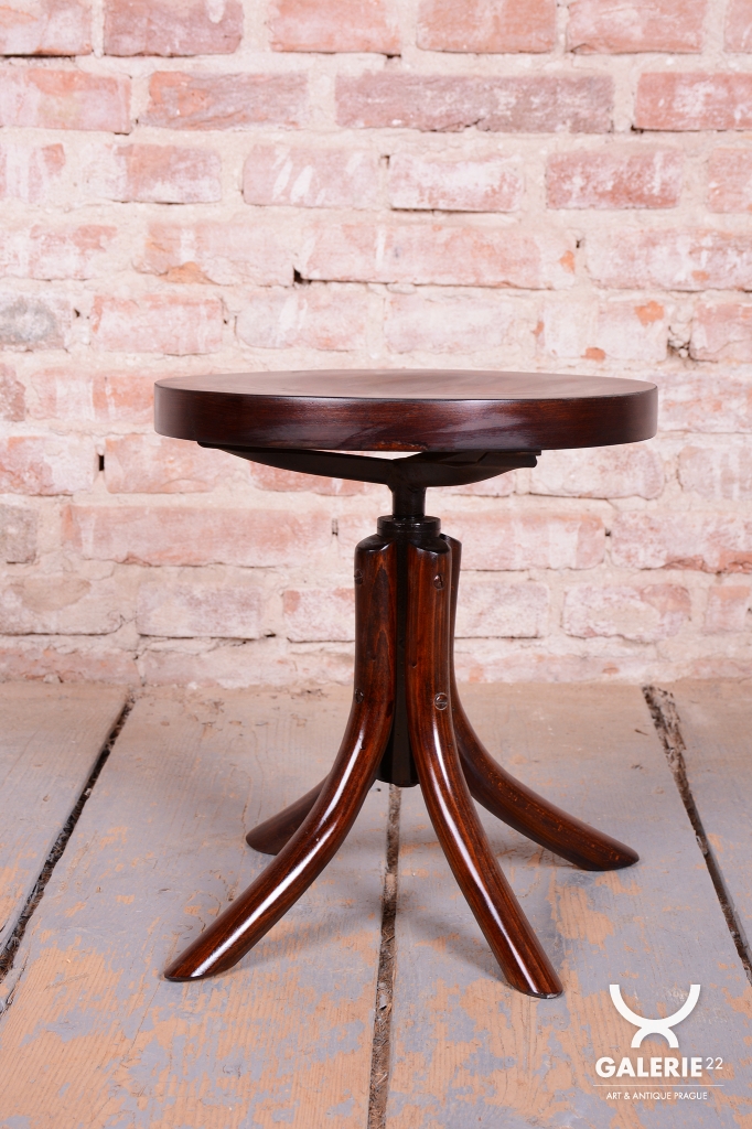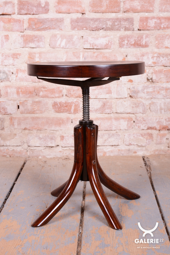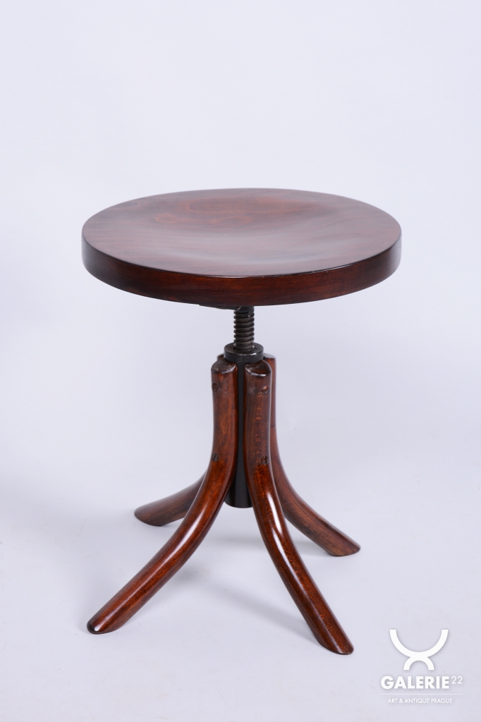 Tato klavírní stolička je elegantním i funkčním doplňkem z období československého Art Deca 30. let 20. století. Byla vyrobena ve světoznámém závodě Thonet v Bystřici pod Hostýnem, který byl v meziválečném období centrem inovací v ohýbaném nábytku. Stolička v sobě spojuje střídmou moderní estetiku s precizním technickým řešením, které bylo pro značku Thonet typické.