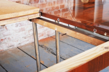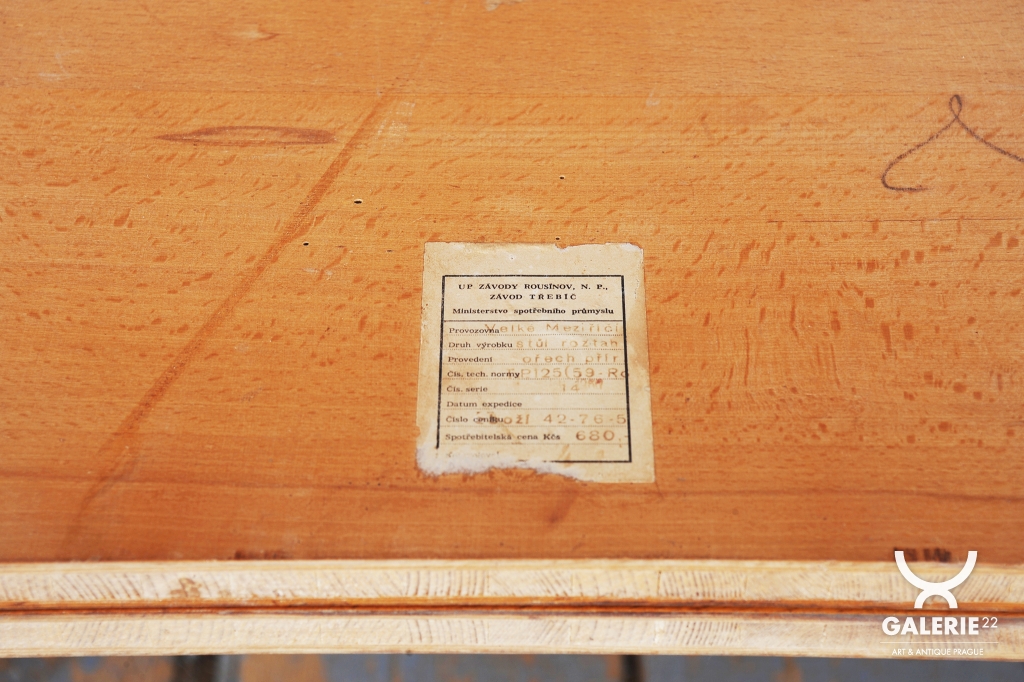 Stůl je rozkládací a nabízí dvě nastavitelné šířky, což umožňuje flexibilní využití v různých interiérech. Jeho kombinace kvalitních materiálů a promyšleného designu z něj činí nejen funkční kus nábytku, ale také estetický prvek s historickou hodnotou.