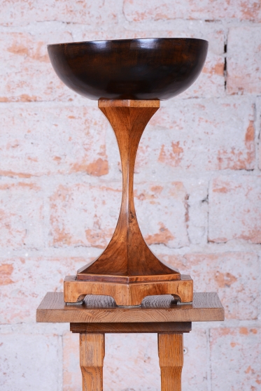 This exceptional small pedestal in the shape of a bowl is a masterpiece of Austrian Biedermeier from the early 19th century. It looks like a large chalice, which provides a sense of monumentality while keeping delicate proportions. This is an iconic design by the Viennese architect Josef Danhauser. He was a prominent representative of the Biedermeier style. His furniture continues to define the aesthetic of bourgeois elegance and comfort in Austria during that period.