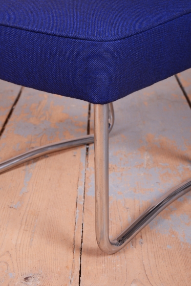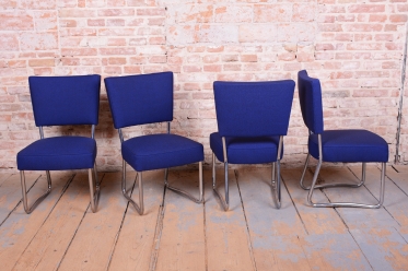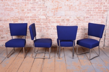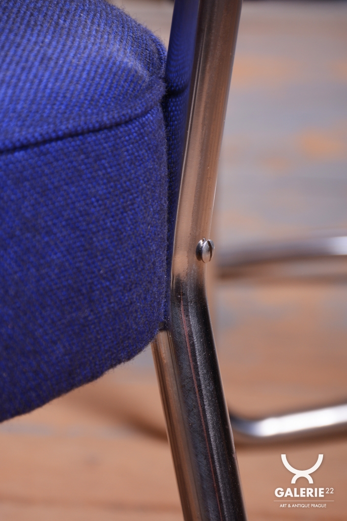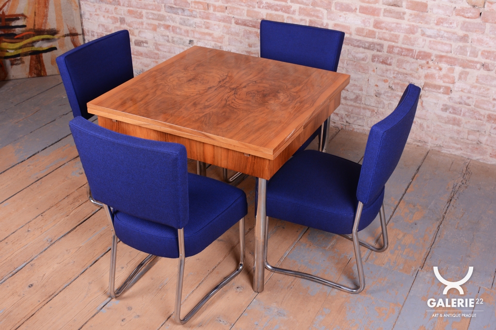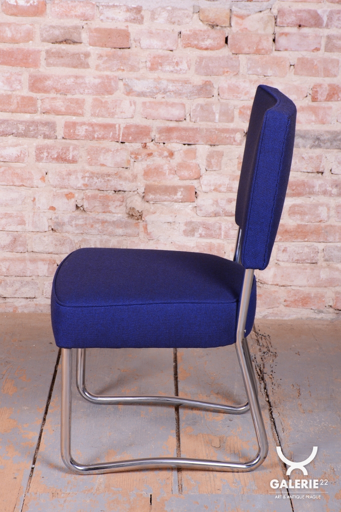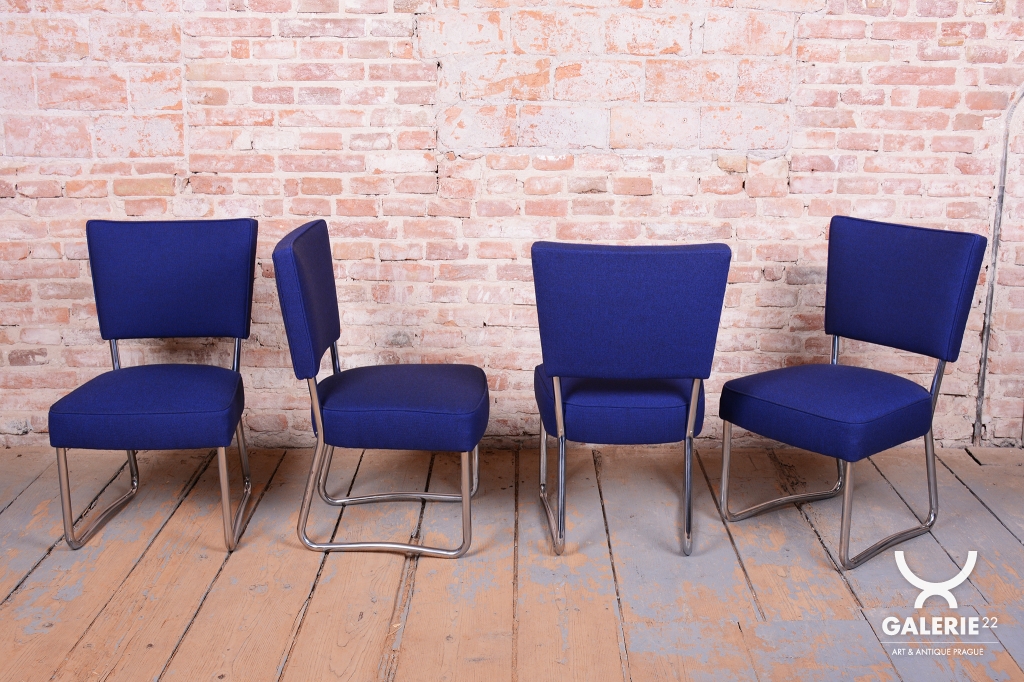 This exclusive set of 4 chairs is a prime representative of the Bauhaus functionalist style, manufactured in 1930s Czechoslovakia by the prestigious Hynek Gottwald factory. This company was renowned for its precision in producing high-quality bent tubular furniture. The chairs are built on an elegant yet highly stable frame of chrome-plated steel, which has been professionally cleaned during restoration to regain its characteristic mirror-like luster.