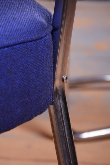 As part of the comprehensive restoration, the chairs have been newly and expertly upholstered, with strict adherence to the original design in terms of both shape and craftsmanship. This ensures that the furniture maintains its authentic period appearance while providing maximum comfort for today’s user. The set is fully functional, with a solid frame free of wobbles, making it an ideal choice for those seeking a blend of iconic design and everyday utility for a dining or work table.