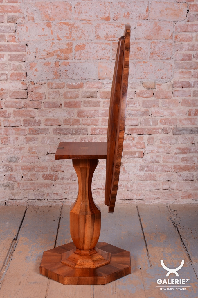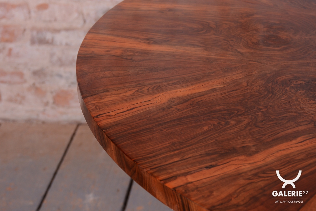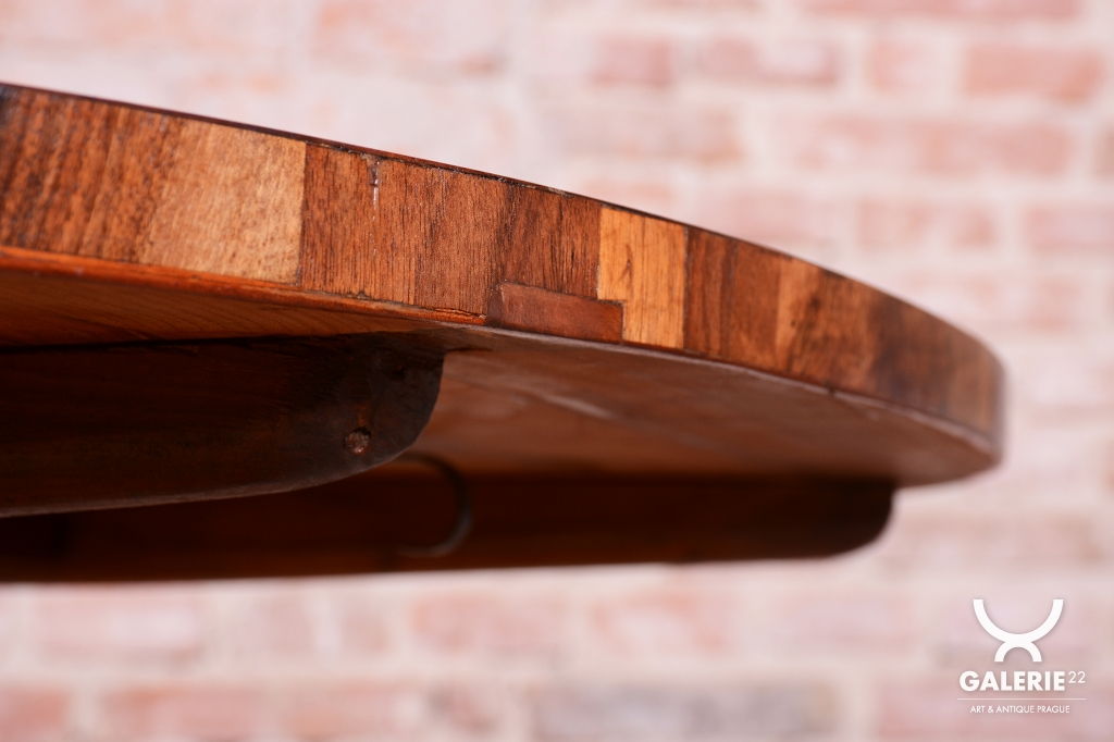 A notable structural feature is the tilt-top mechanism, which was highly popular during its time for saving space in the salon and remains fully functional today. The table has undergone professional restoration, during which the original wood polish was sensitively revived, highlighting the depth and golden reflections of the walnut wood. Despite its delicate appearance, the table boasts a stable and firm construction. This is an authentic collectors piece carrying the signature style of the Viennese aristocratic workshop, ready to serve as the centerpiece of any classic interior.