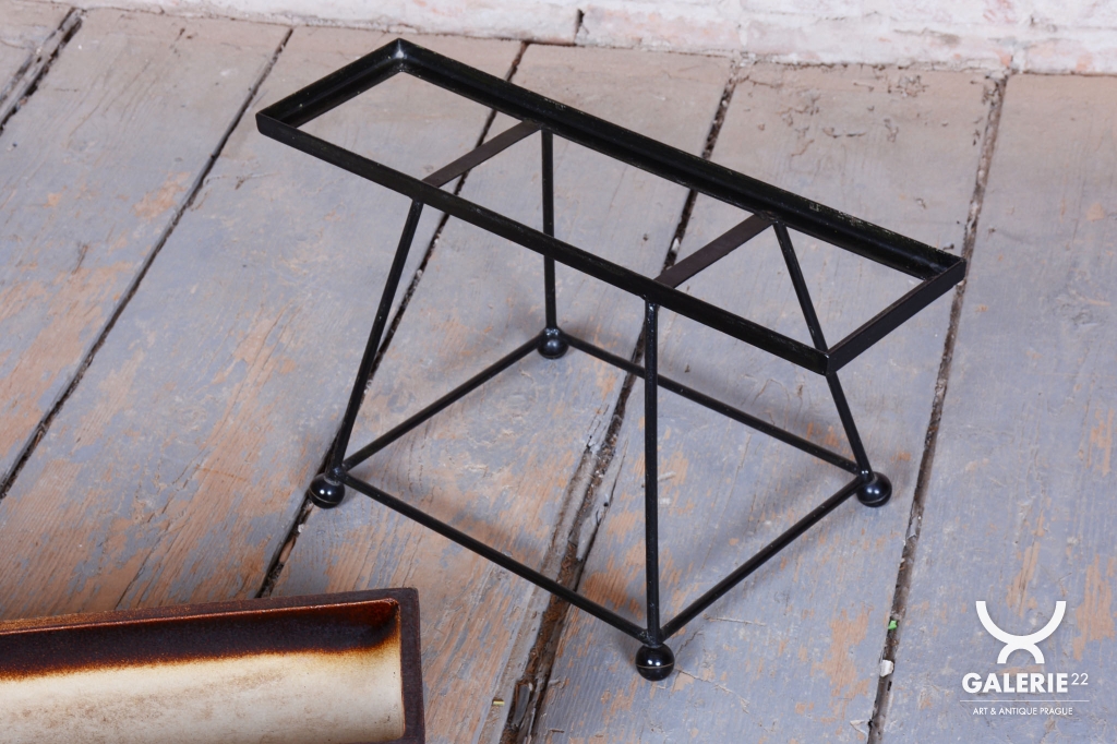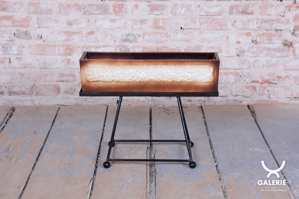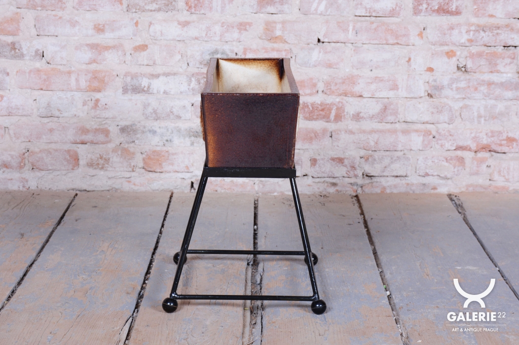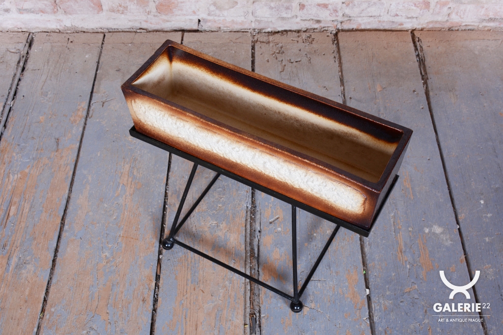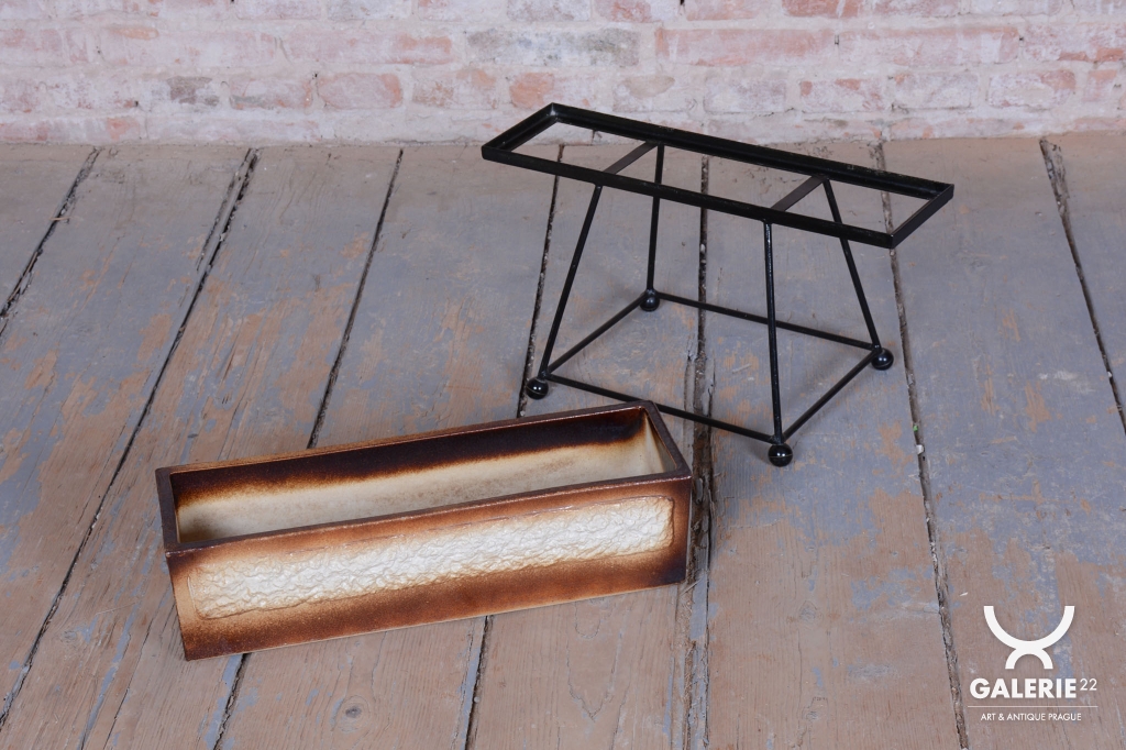 This stylish ceramic planter on a steel stand is an authentic piece of Mid-Century design from Czechoslovakia, dating back to the 1960s. It perfectly embodies the era trend of combining natural and industrial materials.
