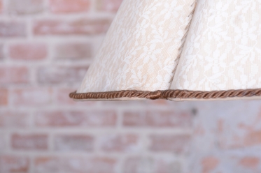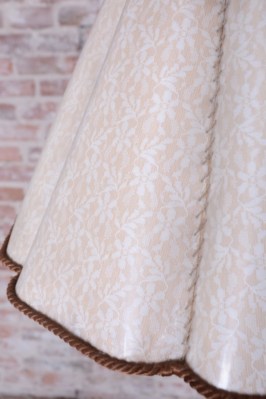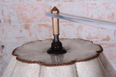 The lamp is fitted with its original foiled textile lampshade, which has been professionally cleaned and provides pleasant, diffused light. New electrical wiring has been installed for safe and reliable use.