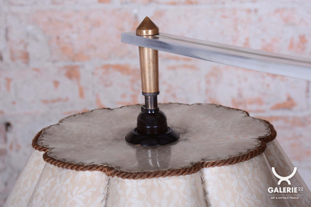 This striking Art Deco floor lamp originates from Czechoslovakia from the 1920s. It embodies an elegance that relies on robust materials and decorative details.