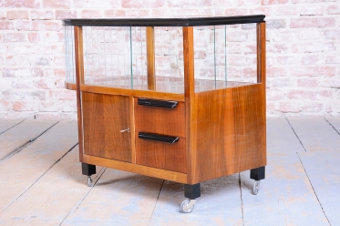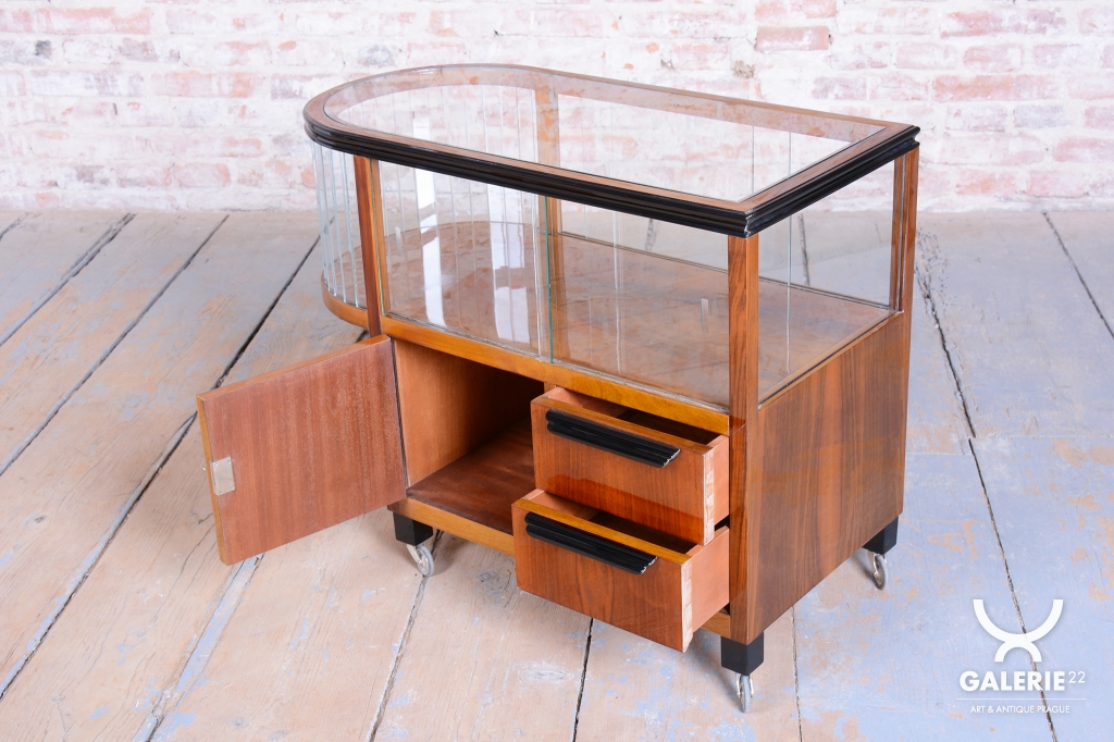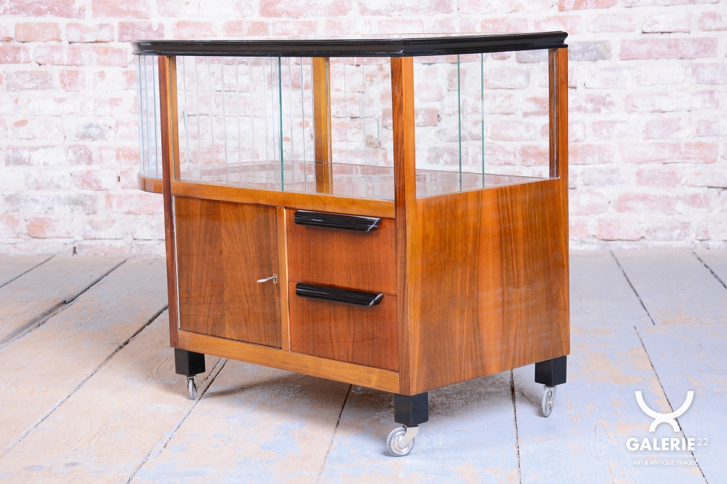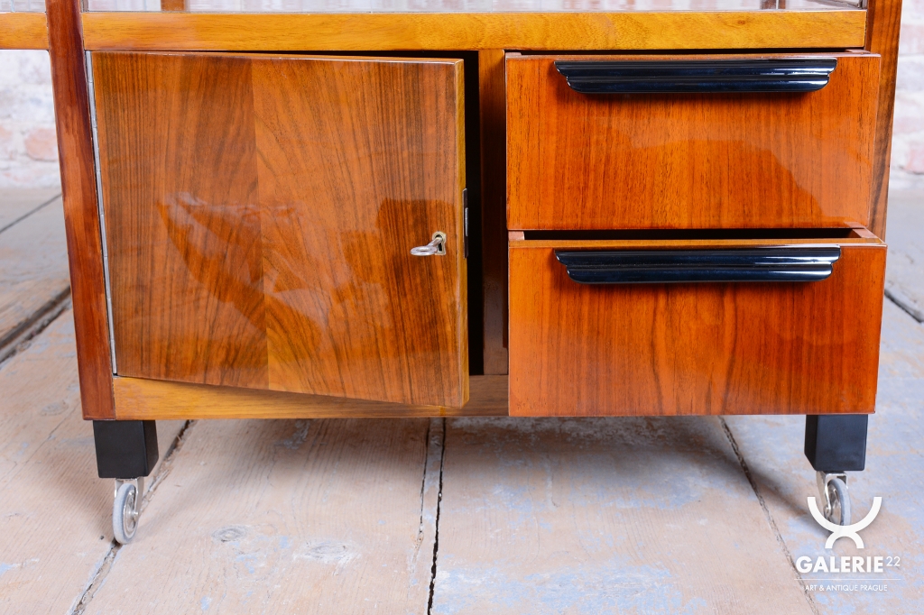 This luxurious mobile serving cart in the Art Deco style is an iconic piece from Czechoslovakia from the 1920s. It embodies the elegance and functionality typical of this period.
