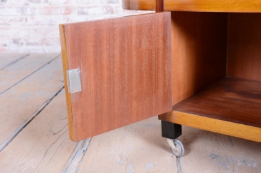Thanks to its casters, the cart is fully functional and mobile, making it easy to maneuver. It has undergone a complete restoration and is ready to become an elegant and practical addition to your interior.