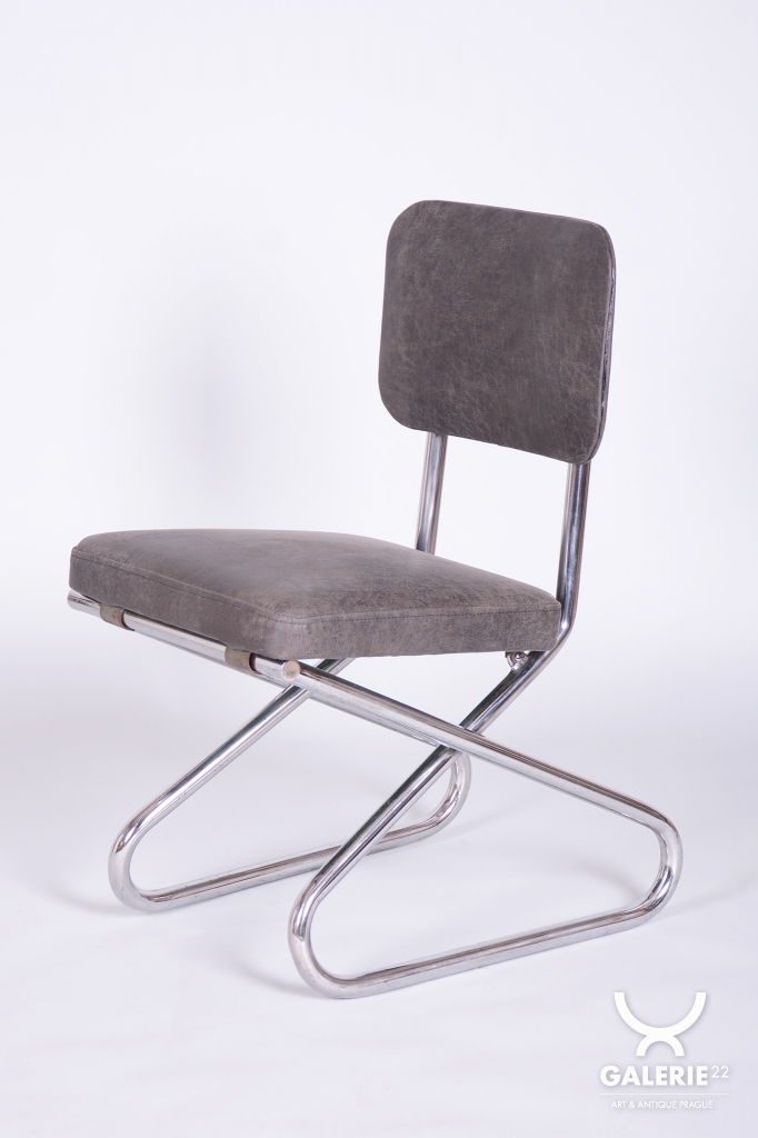 This unique Bauhaus-style chair originates from Germany and dates back to the 1930s. The design, featuring a dynamic crossed base made of tubular steel, is an excellent example of the innovative functionalism of its era.