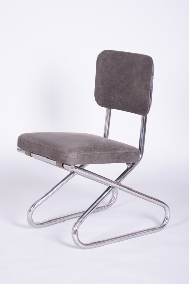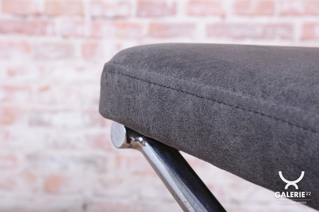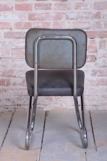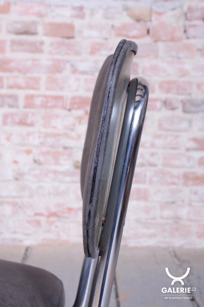 The frame is crafted from tubular chrome-plated steel, which has been professionally cleaned and shines like new. The chair features new upholstery executed according to the original design, ensuring an authentic look and maximum comfort.