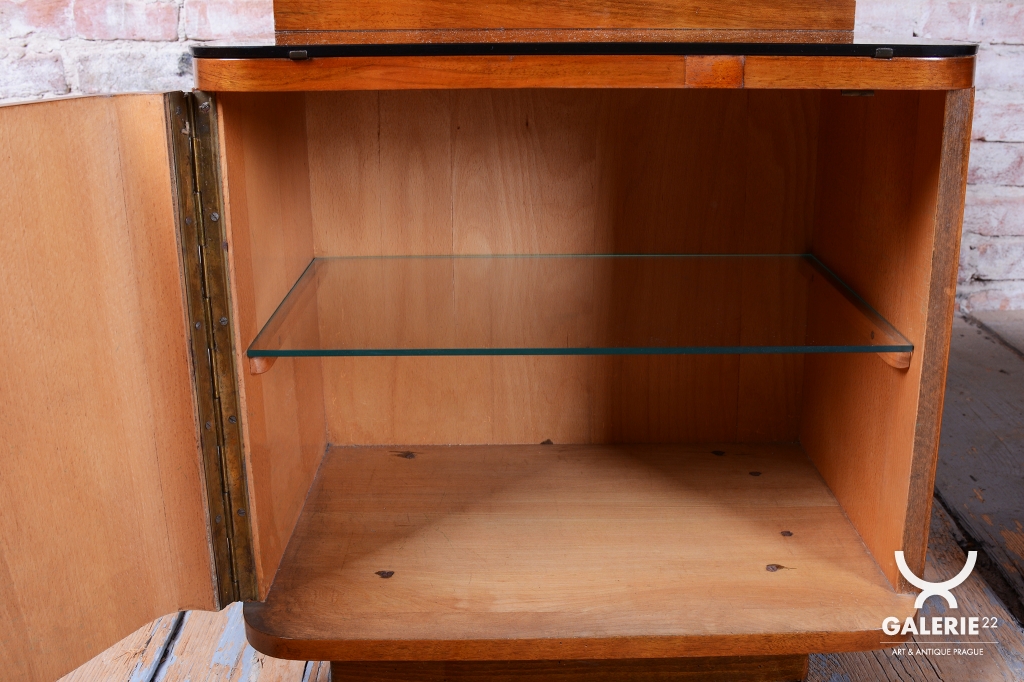 This is a highly sought-after, collectible furniture set from the renowned Czech manufacturer UP Závody (United Arts and Crafts Workshops) and is attributed to one of the most significant Czechoslovak designers, Jindřich Halabala. The set originates from the Czech Republic (Čechy).