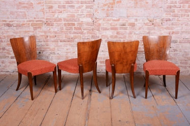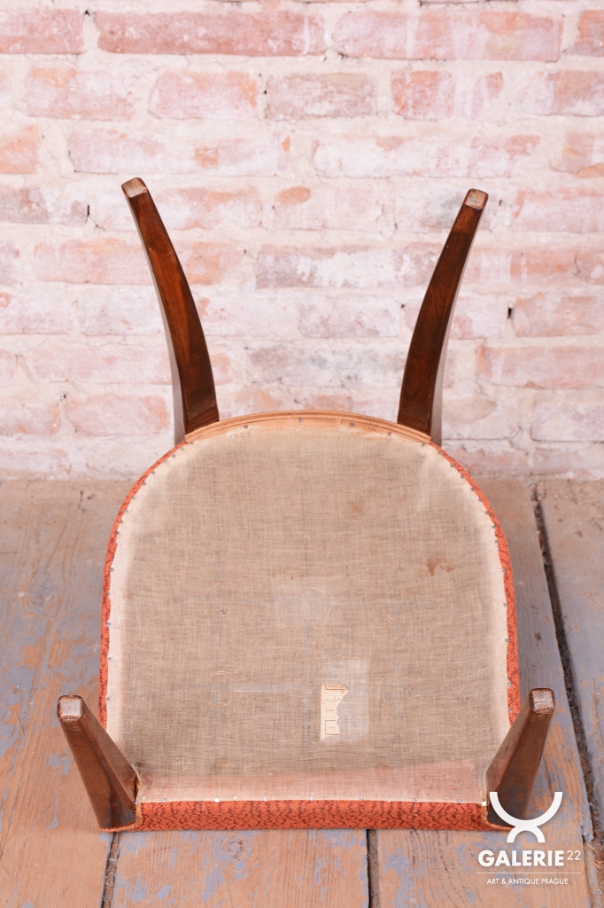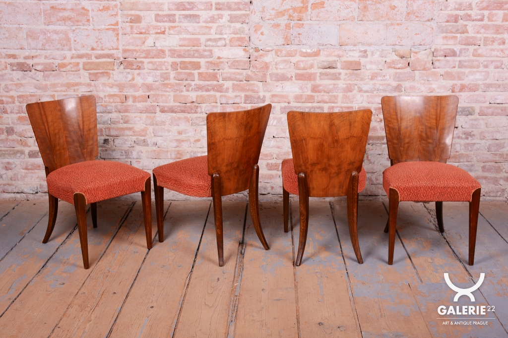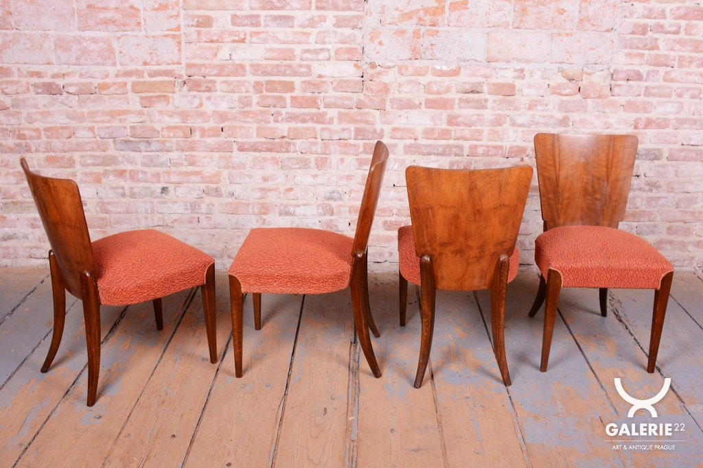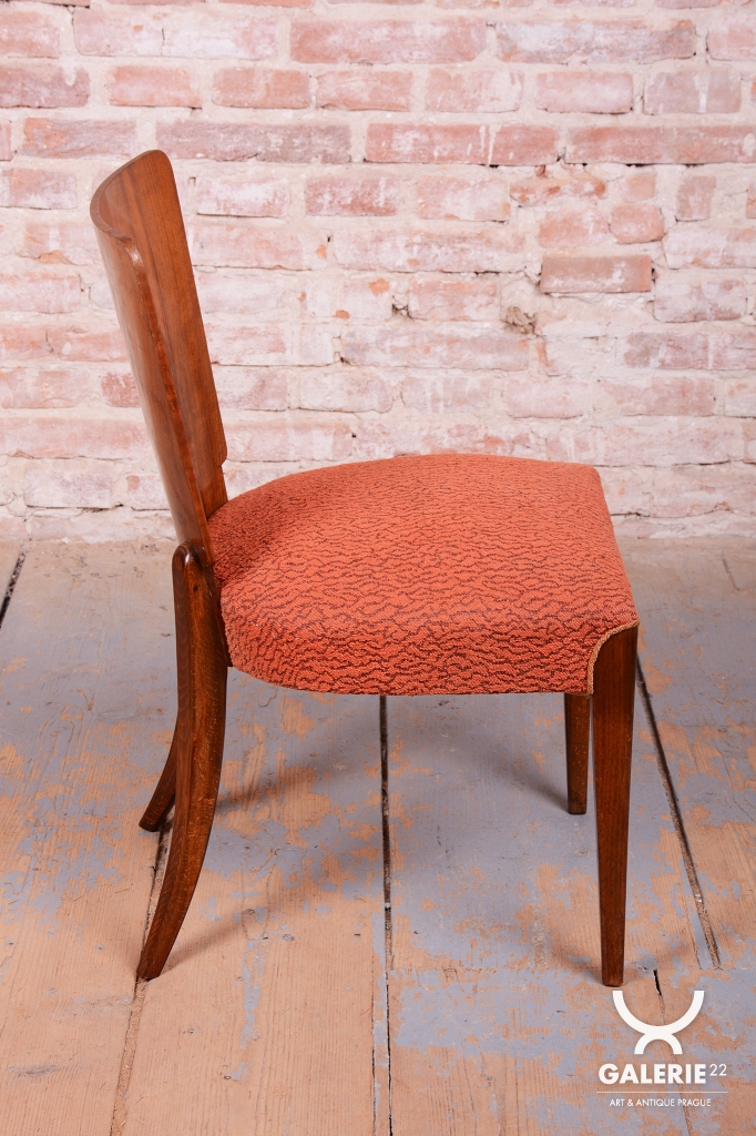 This set of four early 20th-century chairs embodies the iconic Czechoslovak Art Deco design, associated with Jindřich Halabala and UP Závody. The construction features a combination of walnut and beech veneer, giving the chairs an elegant appearance while ensuring durability and stability. Their timeless design makes them a versatile addition to both classic and contemporary interiors.