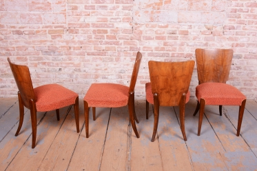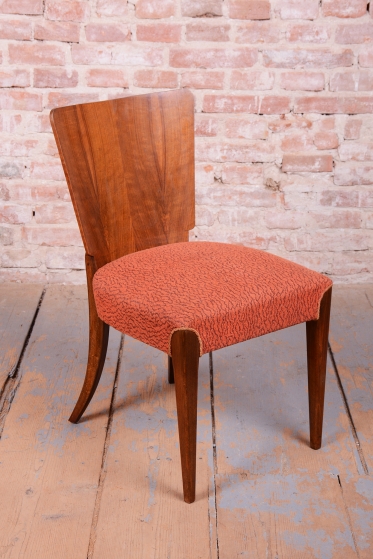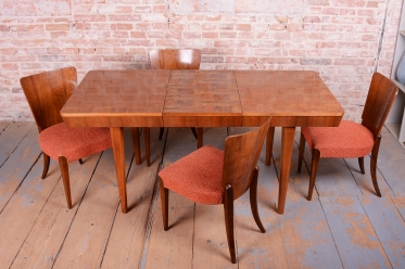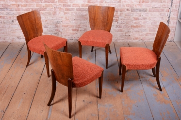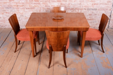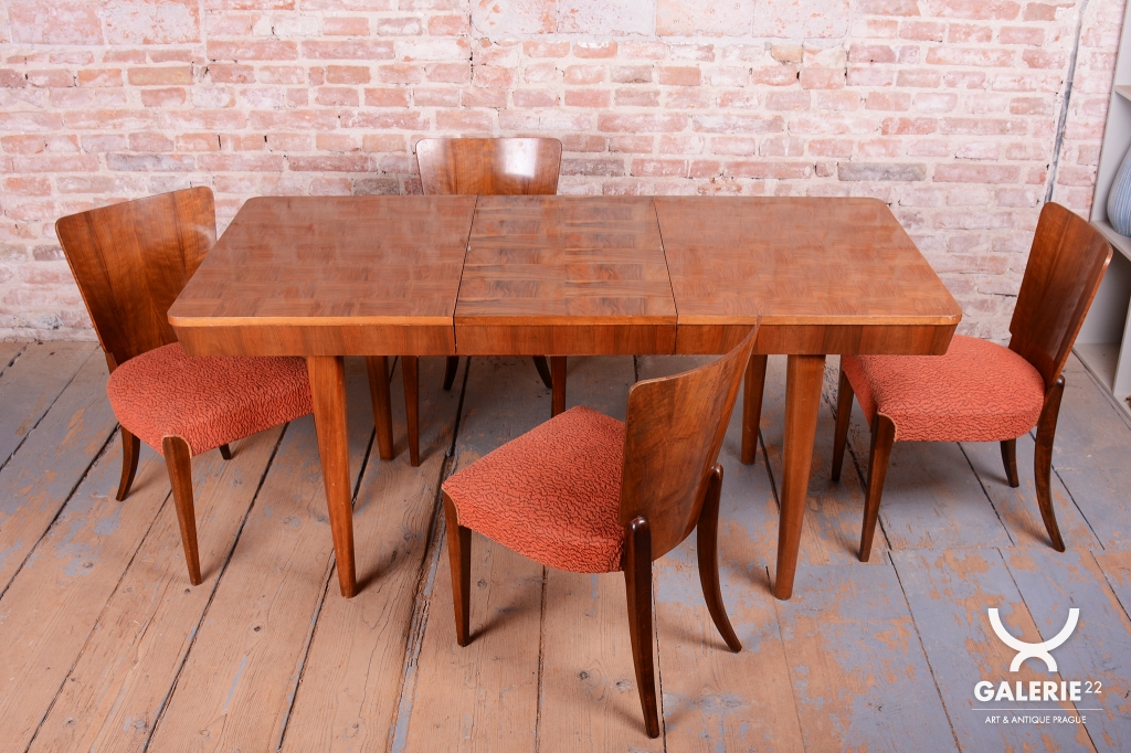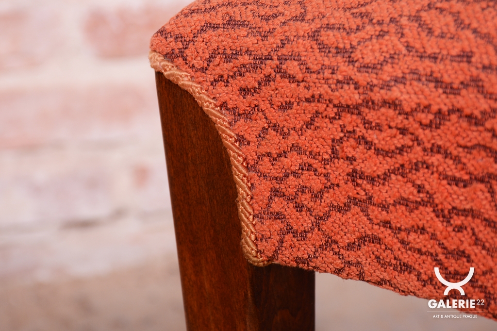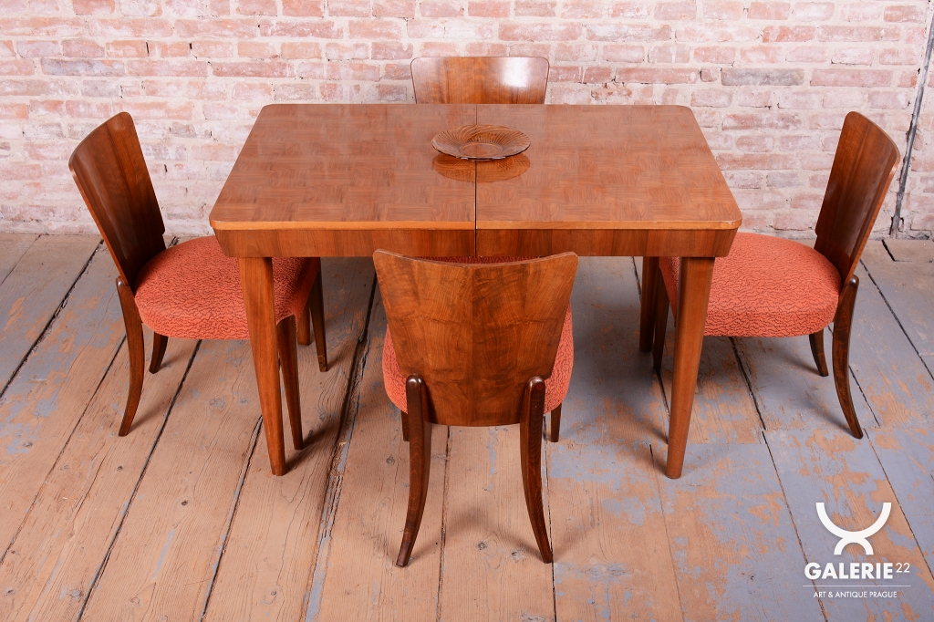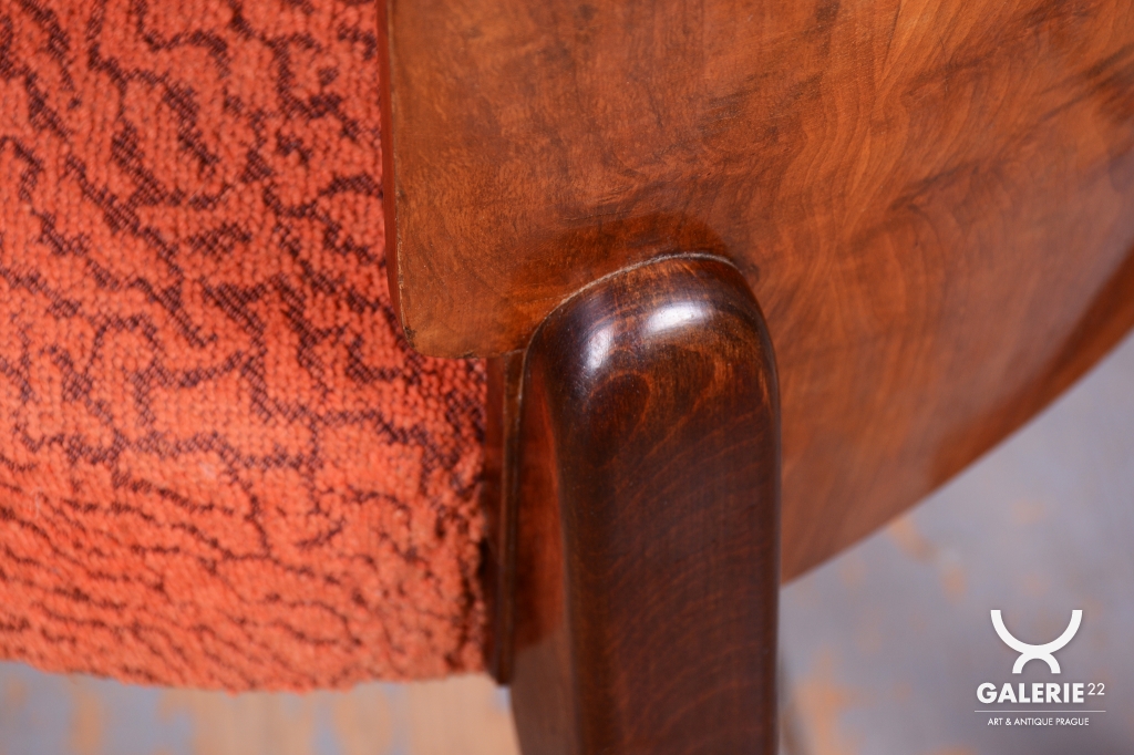 This set of four early 20th-century chairs embodies the iconic Czechoslovak Art Deco design, associated with Jindřich Halabala and UP Závody. The construction features a combination of walnut and beech veneer, giving the chairs an elegant appearance while ensuring durability and stability. Their timeless design makes them a versatile addition to both classic and contemporary interiors.