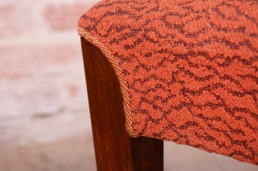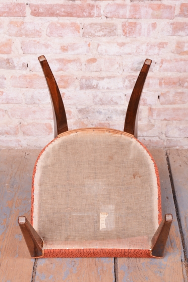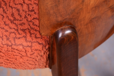 The chairs are in very well-preserved original condition, with a refreshed polish that highlights the natural beauty of the wood. The upholstery has been professionally cleaned to maintain its original comfort and aesthetics. This set is an excellent choice for collectors and enthusiasts of authentic Art Deco furniture.