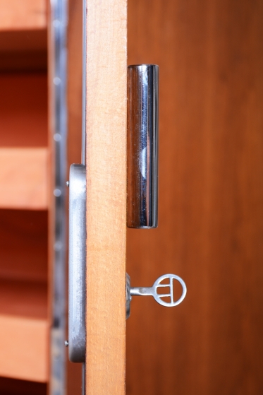 The cabinet has undergone a complete restoration. The original wood polish was revived to bring out its natural beauty and patina. Thanks to the fully functional original lock, the cabinet is ready to serve its purpose.