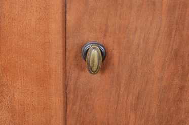 A striking design element is the chrome frame of the glass dial door. This feature creates a sharp, modern contrast to the warm tones of the walnut wood. The clock contains the original movement, which emphasizes the authenticity of the entire piece. The object remains in its original, very well-preserved condition. This fact is a key factor for collectors. This clock is not only a functional timepiece but also a stylish accessory that carries the atmosphere of the First Republic era.
