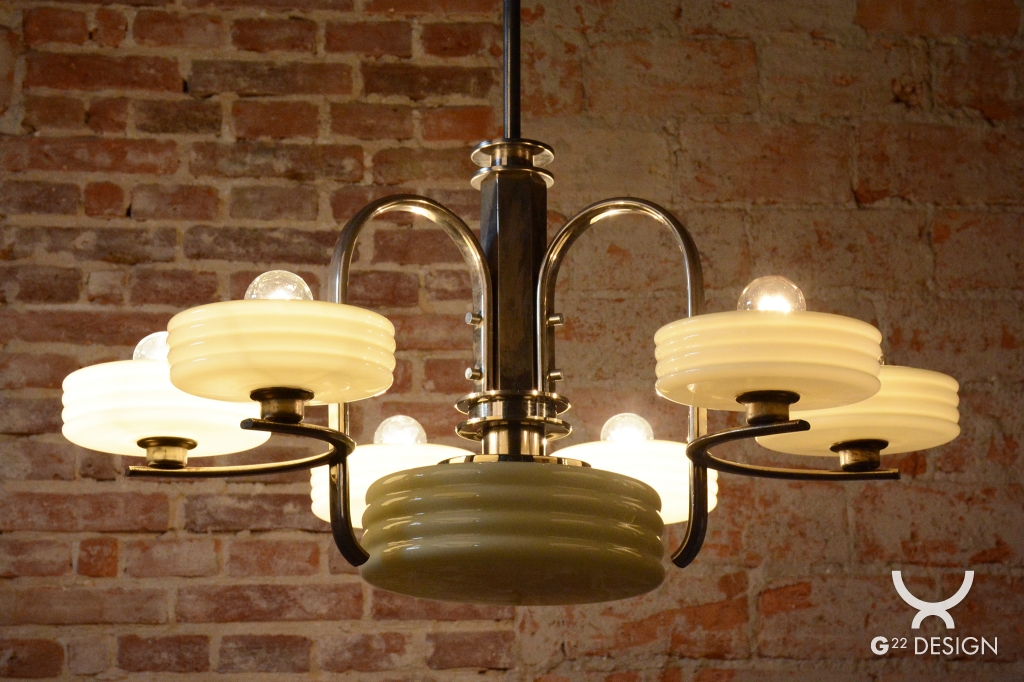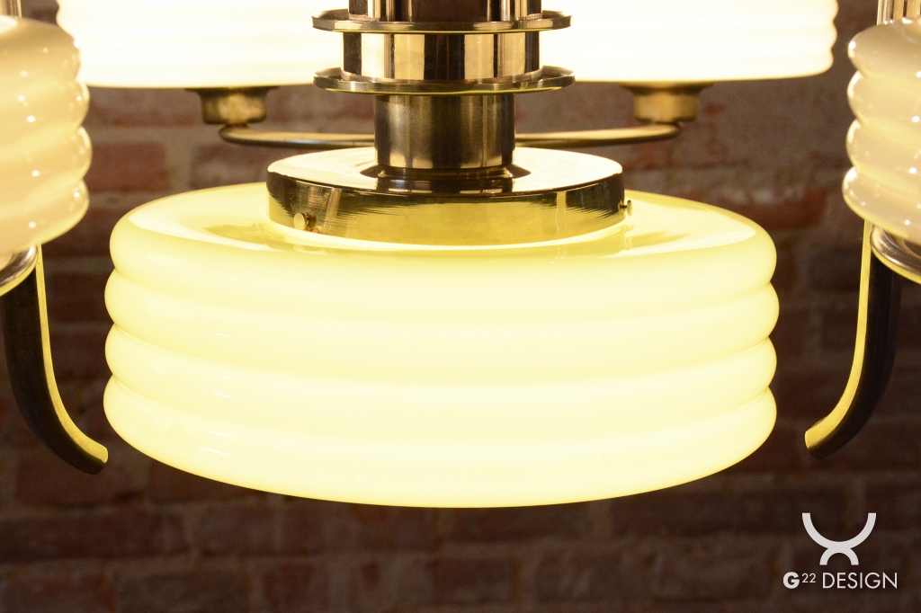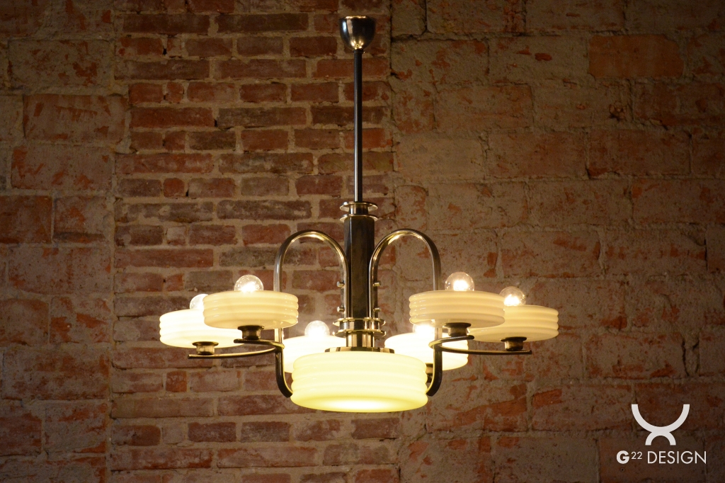 Thanks to its robust construction and timeless design, this chandelier is not only a highly functional light source but also a valuable collectors artifact. Its simple and clean shapes allow for easy integration into both period interiors with historical furniture and minimalist modern apartments. It stands as a perfect testament to the quality of Czechoslovak glassmaking and metalworking from the interwar period, adding an unmistakable atmosphere of classic nobility to any room.