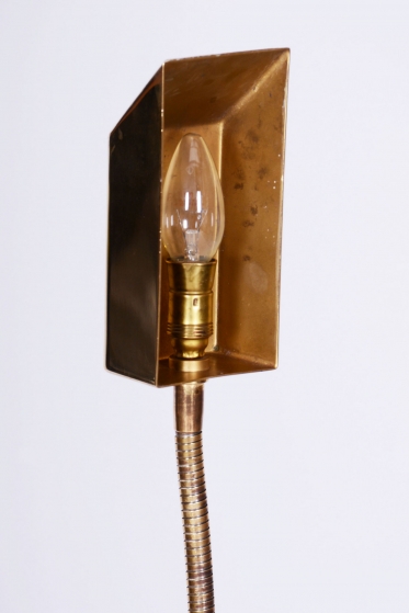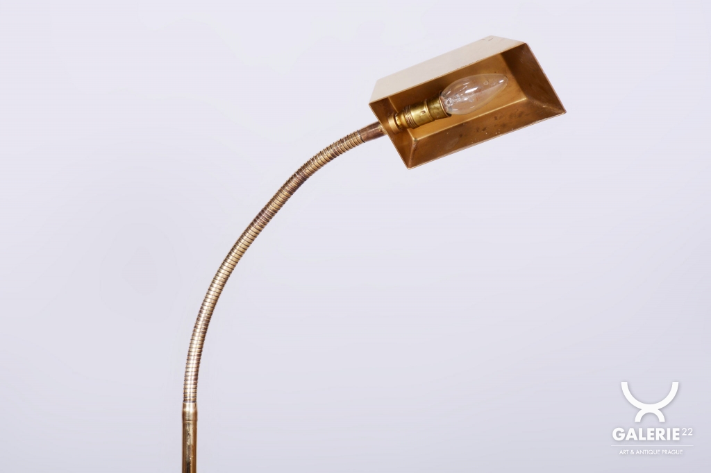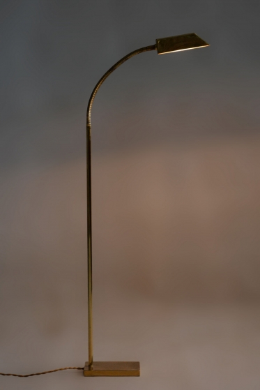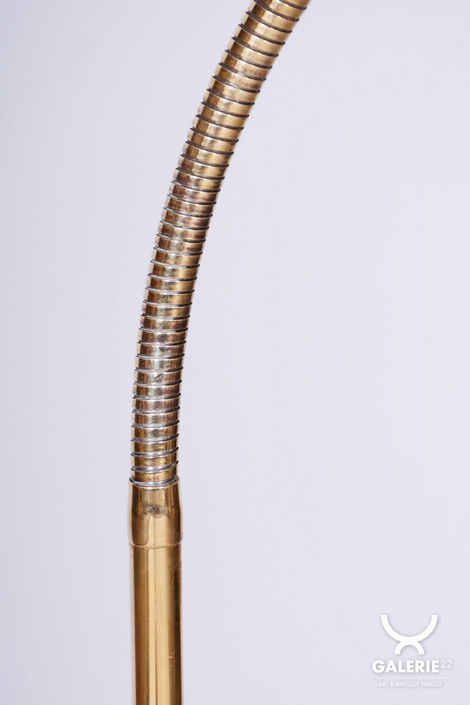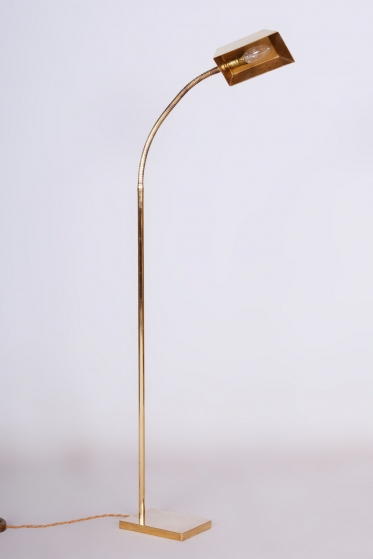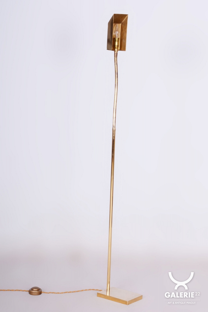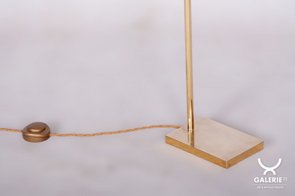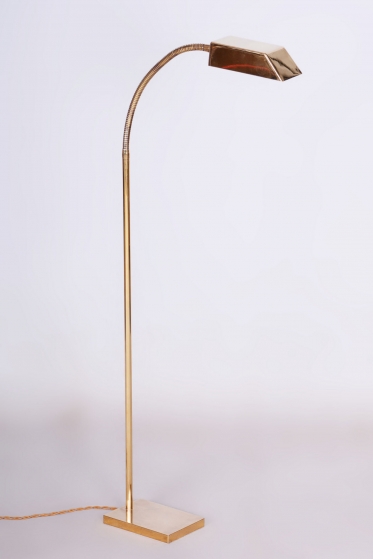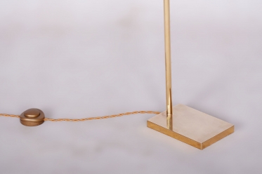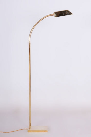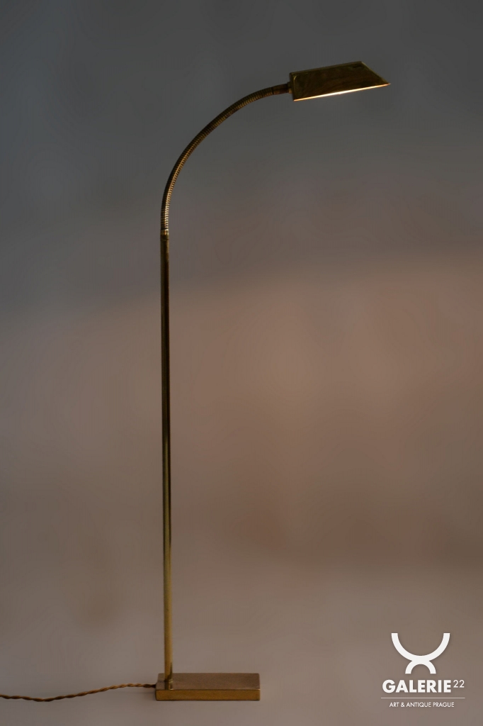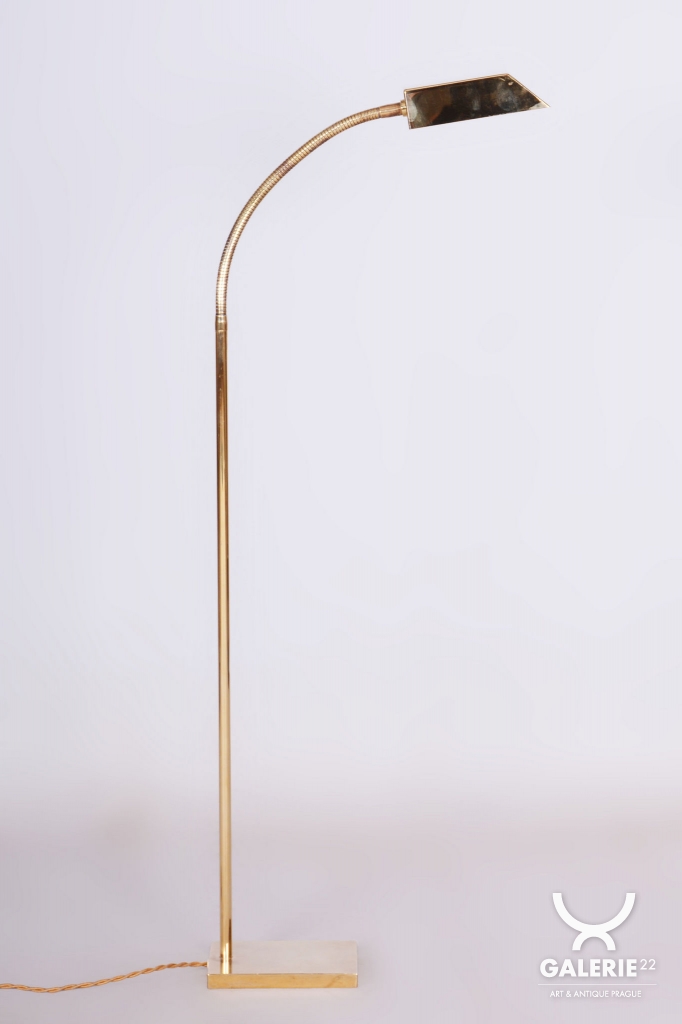 This floor lamp is a stylish representative of German design from the 1970s, a late Mid-Century Modern period that emphasized elegance combined with high functionality. The dominant feature is its brass construction, which has been professionally cleaned to highlight its refined golden surface. The lamp offers great versatility thanks to the adjustable shade, making it an ideal fixture for reading or creating accented atmospheric lighting within an interior.