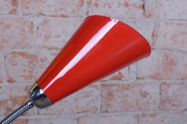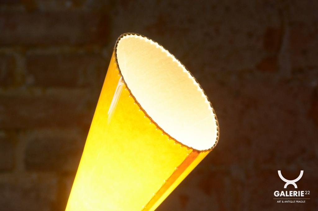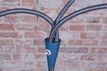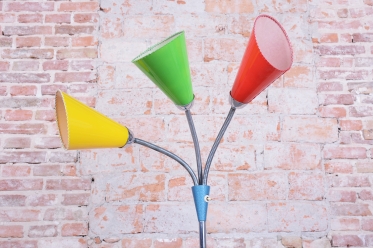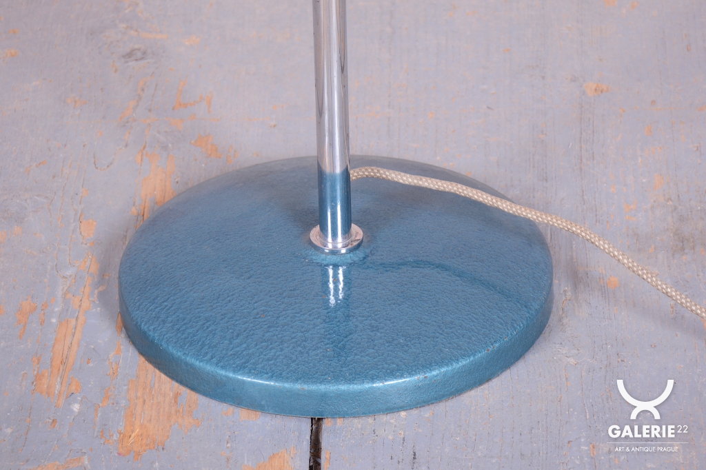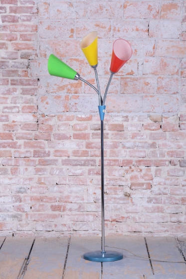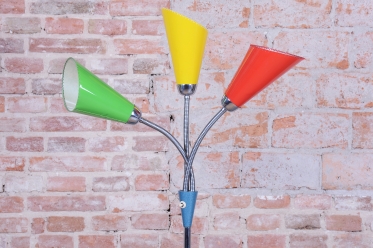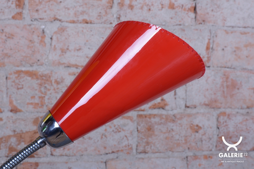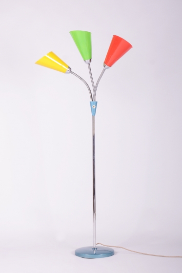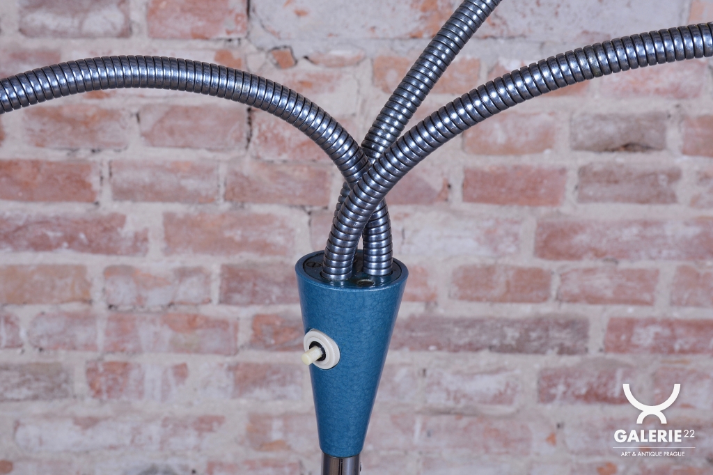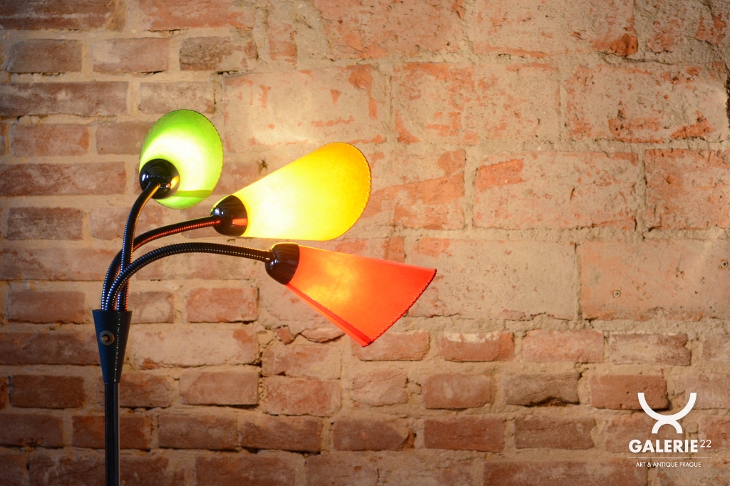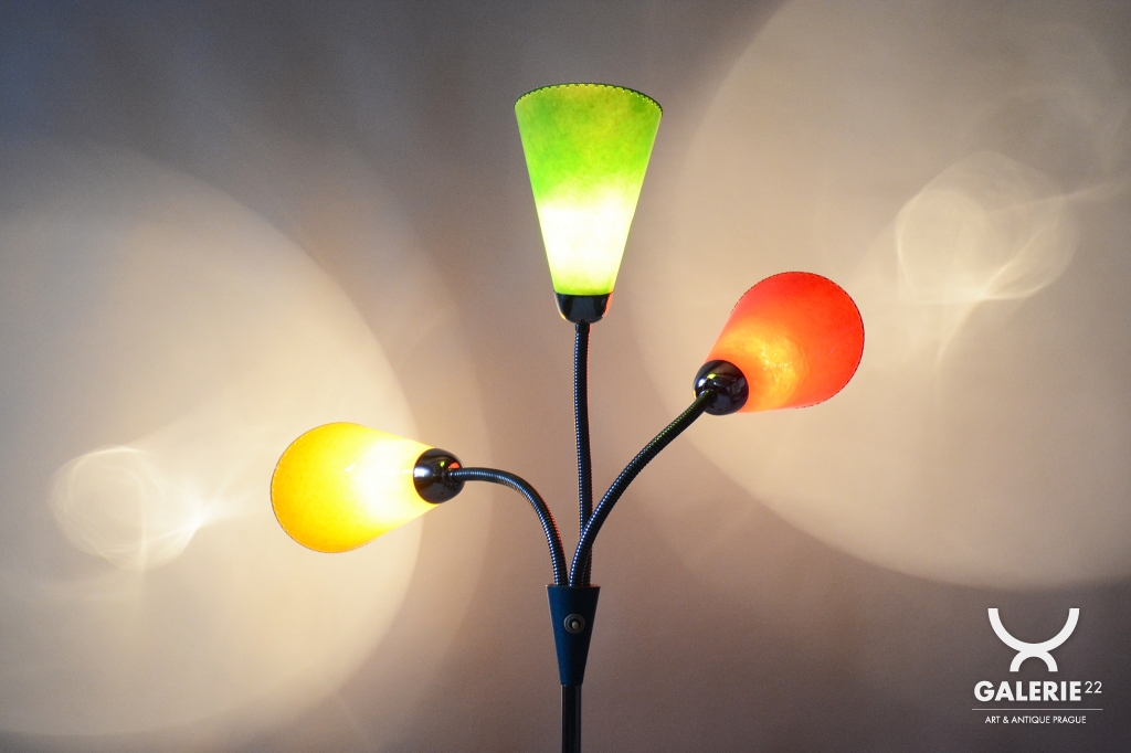 This iconic floor lamp, commonly nicknamed "Goose Necks," is a prominent symbol of Czechoslovak design from the 1960s. The company Lidokov, based in Boskovice, manufactured this piece as TYPE S 102. The lamp represents the peak of Mid-Century aesthetics, where colorful playfulness meets the industrial elegance of chrome.