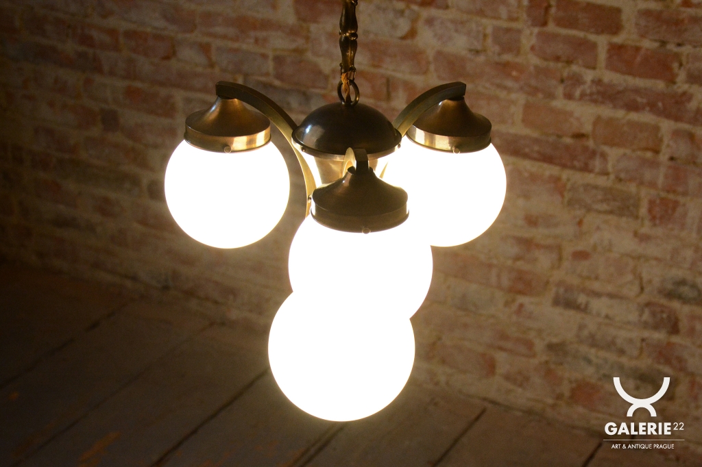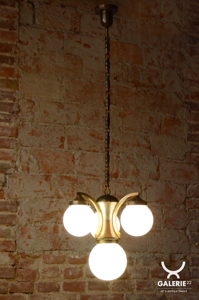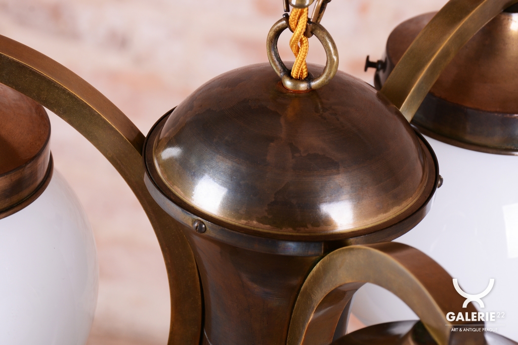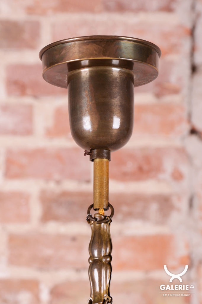 This chandelier is an impressive example of Czechoslovak Art Deco from the early 20th century. During this period, lighting fixtures were designed as prominent interior jewels, combining the geometric order of modernism with traditional craftsmanship. This piece stands out for its balanced composition and material nobility, bringing a touch of First Republic elegance to any space.