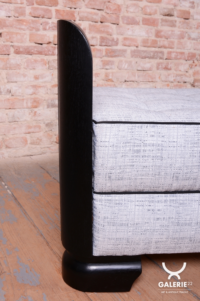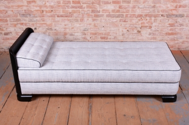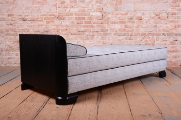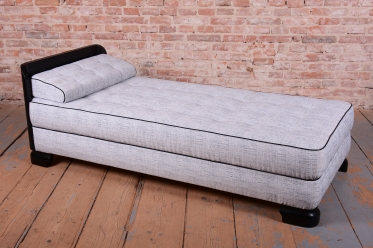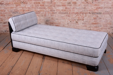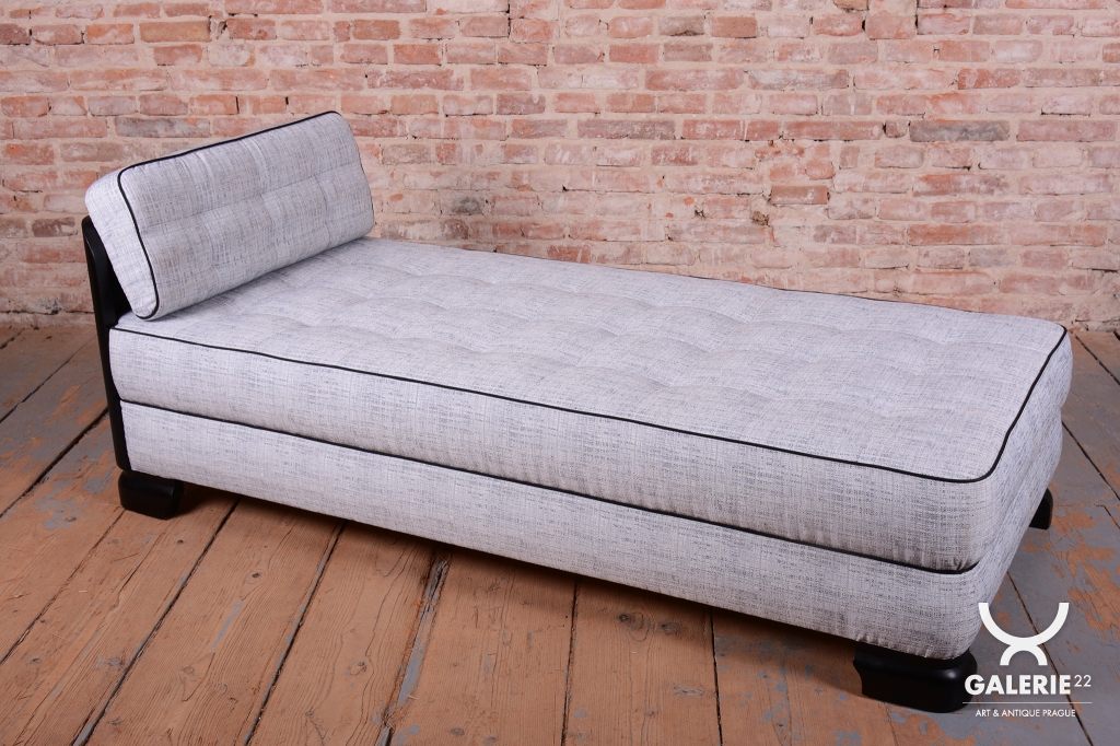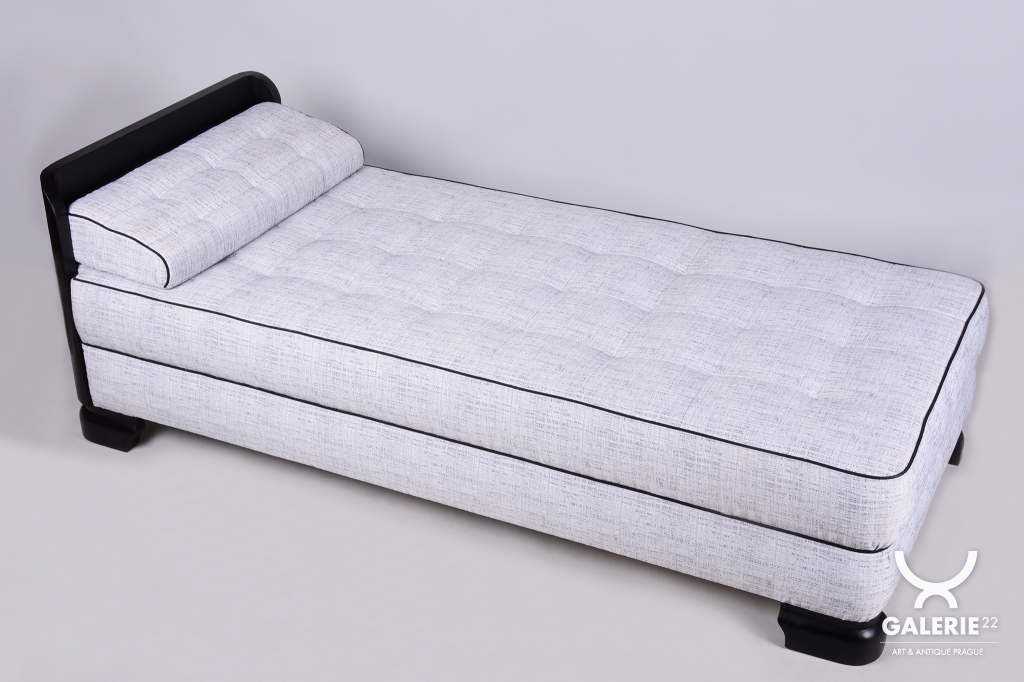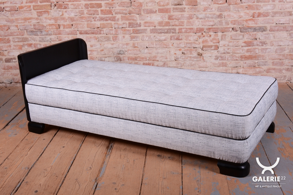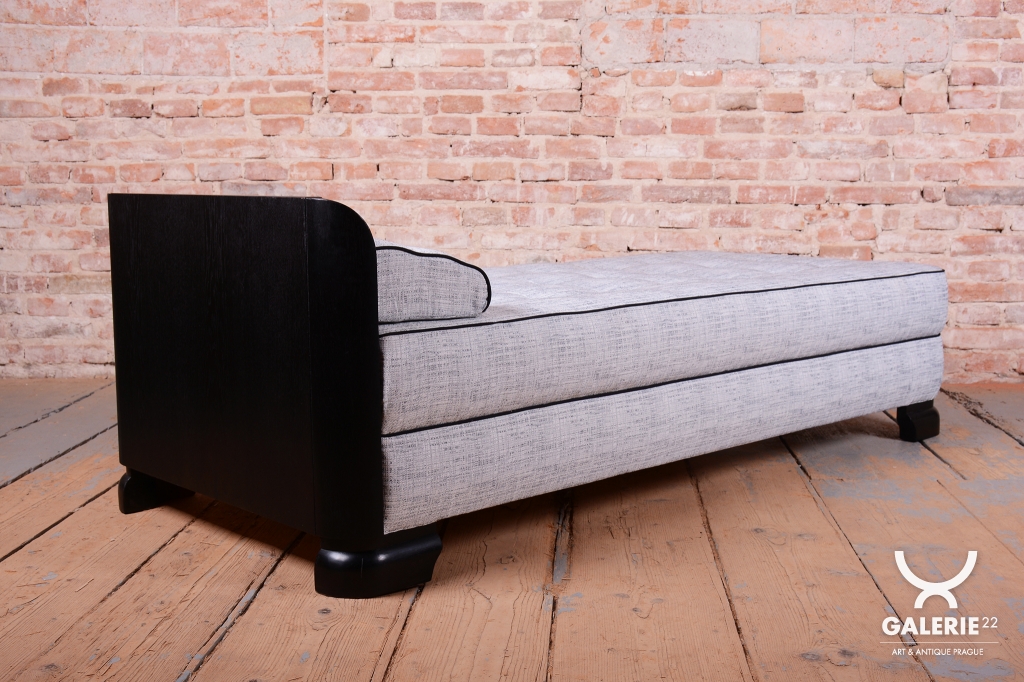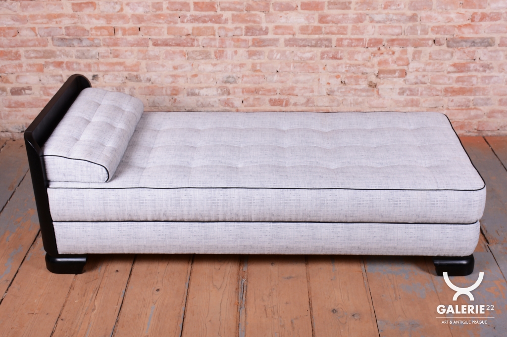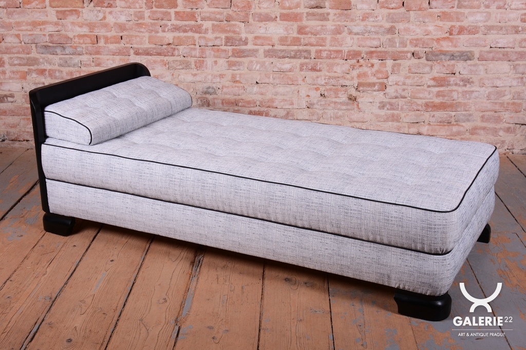 This daybed or chaise longue is a representative piece of Czechoslovak furniture design from the 1930s Art Deco period. At the time, this type of furniture was a symbol of comfort and a modern lifestyle, combining the elegance of a salon piece with the practicality of a bed. With its clean, geometric shape and contrasting colors, it represents a timeless element that stands out in both classic and modern interiors.