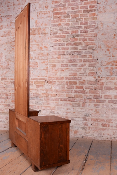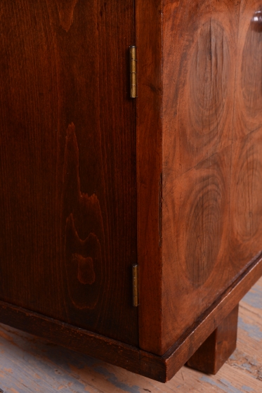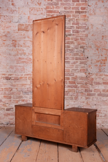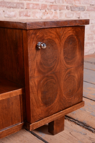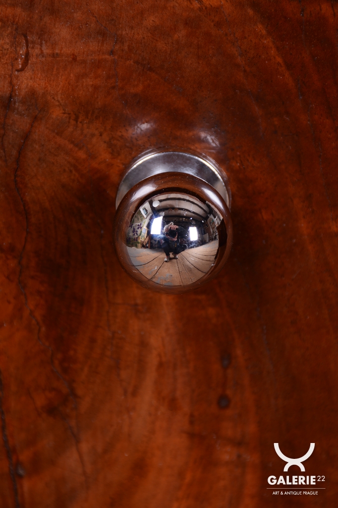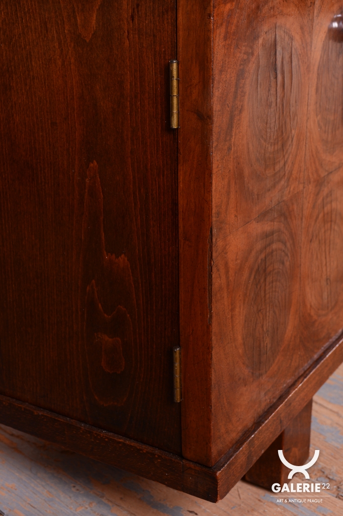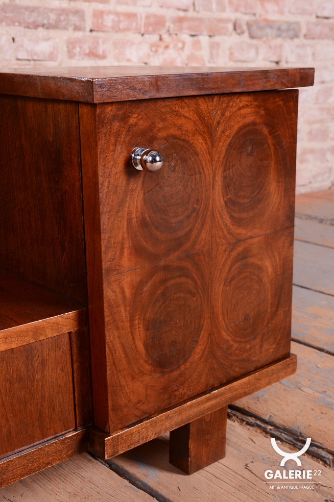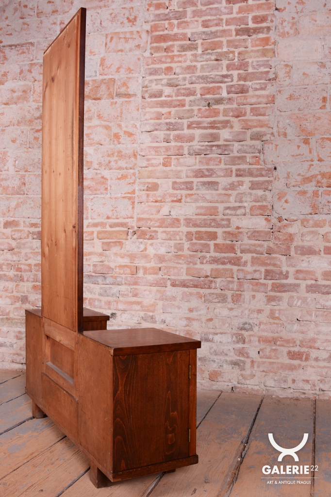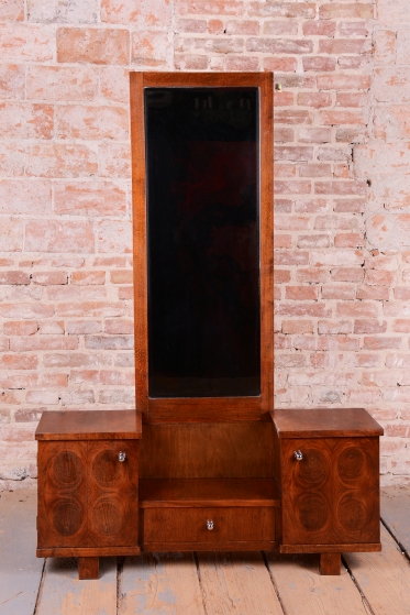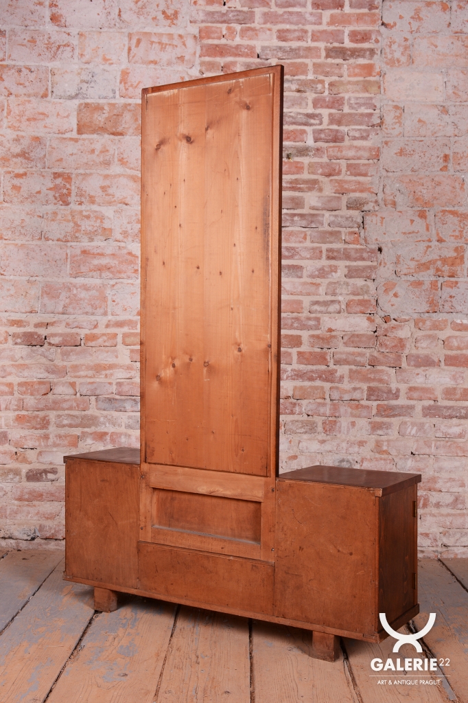 This dressing table (vanity) is the embodiment of elegance and femininity in 1930s interiors. During the peak of the Art Deco period, vanity tables became an indispensable element of modern bedrooms and boudoirs, serving as an intimate space for daily care. This piece stands out with its harmonious blend of geometric rigor and the warm texture of natural wood, characteristic of the Czechoslovak furniture school of that era.